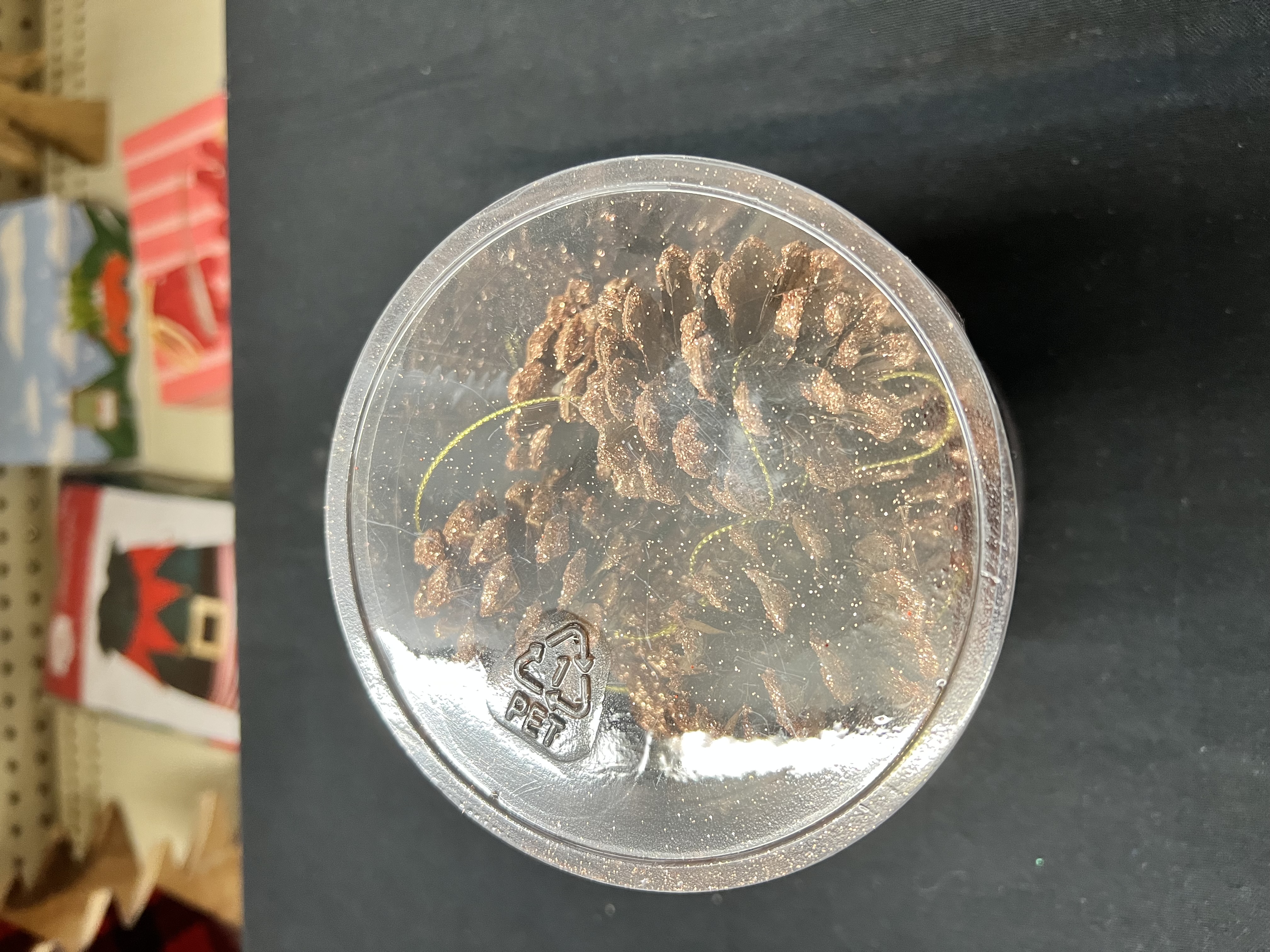 Brown Gilded Pinecone Christmas Decorations, 12 Pieces, 6.30", by Holiday Time Recommended for indoor or covered use Natural pinecone options The perfect touch for your Christmas tree or garland Comes ready to use for instant holiday appeal Adds festive detail to any room or space Great for home or office decorating Crafted with pinecone Product is unlit Product dimensions: 4.92" x 4.92" x 6.30" Product materials: Pinecone, PS, Polyester Model # IG173431