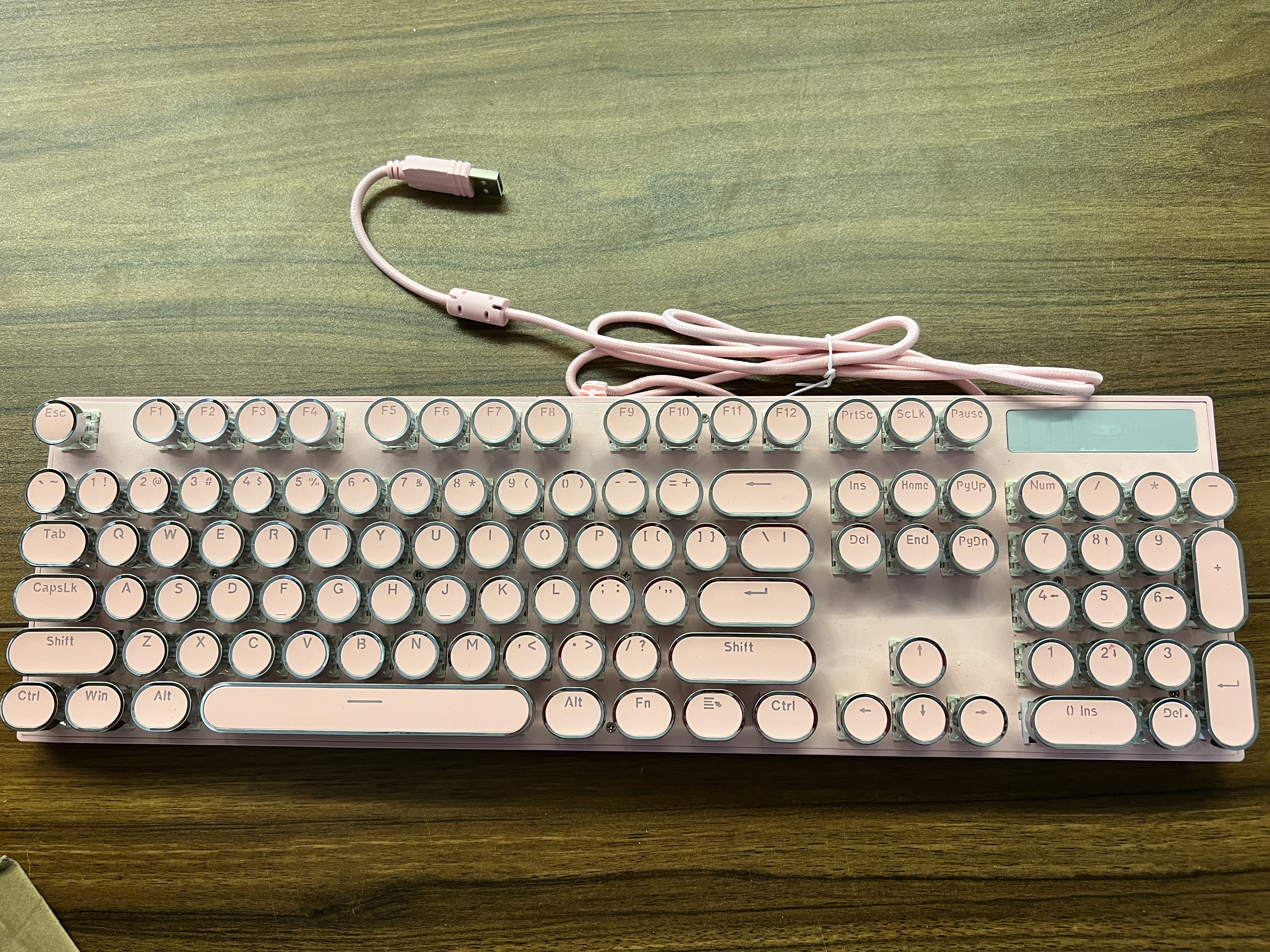 Does The Mechanical Keyboard with Clicky Clack ? 】 - Yes, this gaming keyboard use the blue switch which offer medium resistance, audible click sound and tactile feedback 【 How to Control The Light ? 】 - This pink mechanical gaming keyboard offer multiple white light modes. Press Fn + Ins to choose light mode, Press Fn + ↑ / ↓ to bright / dim the light, Press Fn + ← / → to change speed 【 What System Does It Match ? 】 - The plug of our retro gaming keyboard is USB port, which make it as easy as plug and play. This wired mechanical keyboard adapt to Win 2000/ 7/ 8/ 10/ XP, Vista, Linux, Mac, etc 【 Durable & Special 】 - These keycaps adopt two-color injection molding process, which is durable. And the unique round keycaps make this keyboard so different to traditional keyboard 【 Both For Office & Gaming 】 - With 26 anti-ghosting keys and adjustable rear feet, this cute keyboard has good performance both in office and gaming