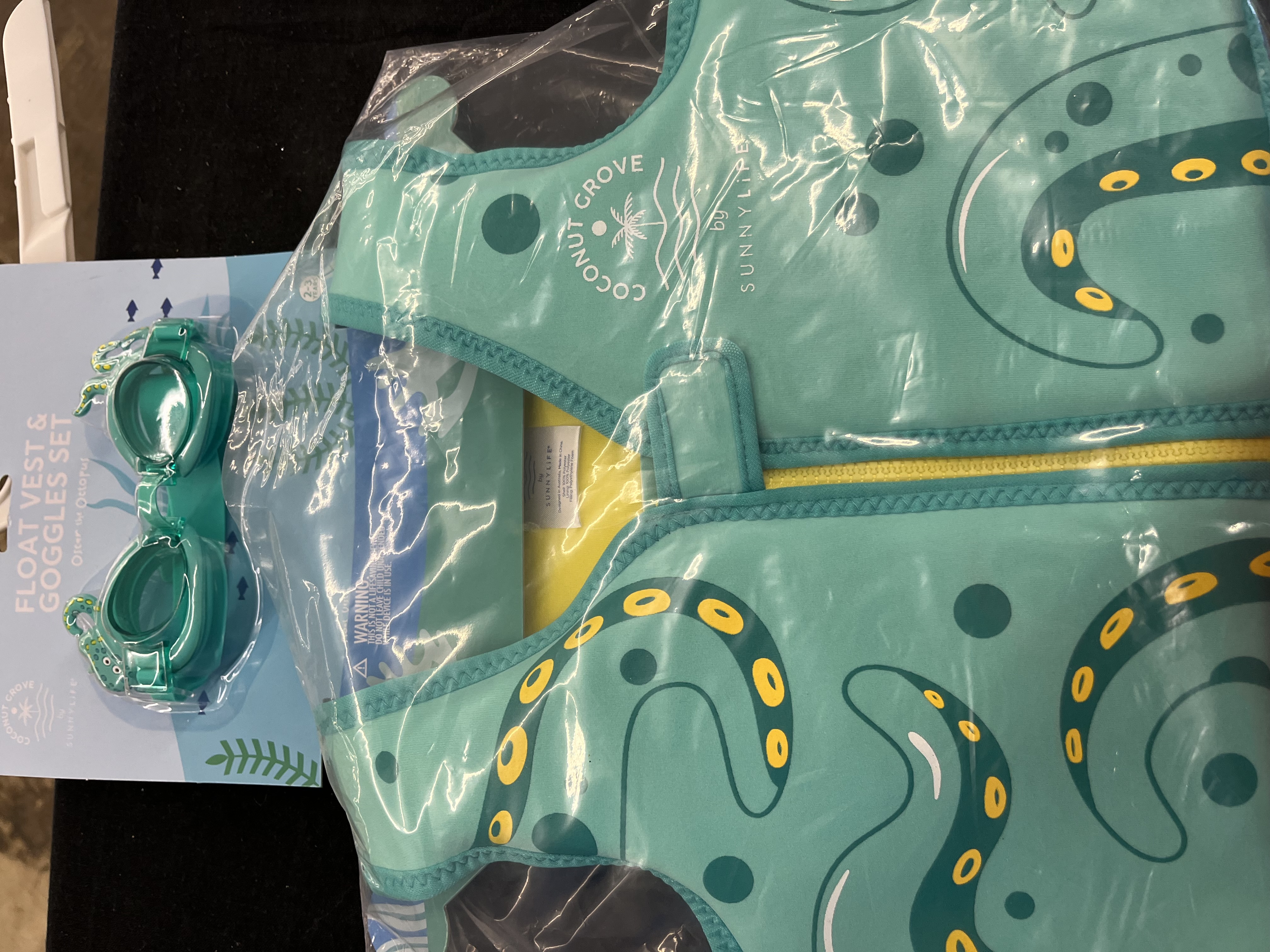 Coconut Grove by Sunnylife - Kids, Unisex Swim Float Vest and Goggles Set - Oscar the Octopus - Reef Gang - Pool Toy