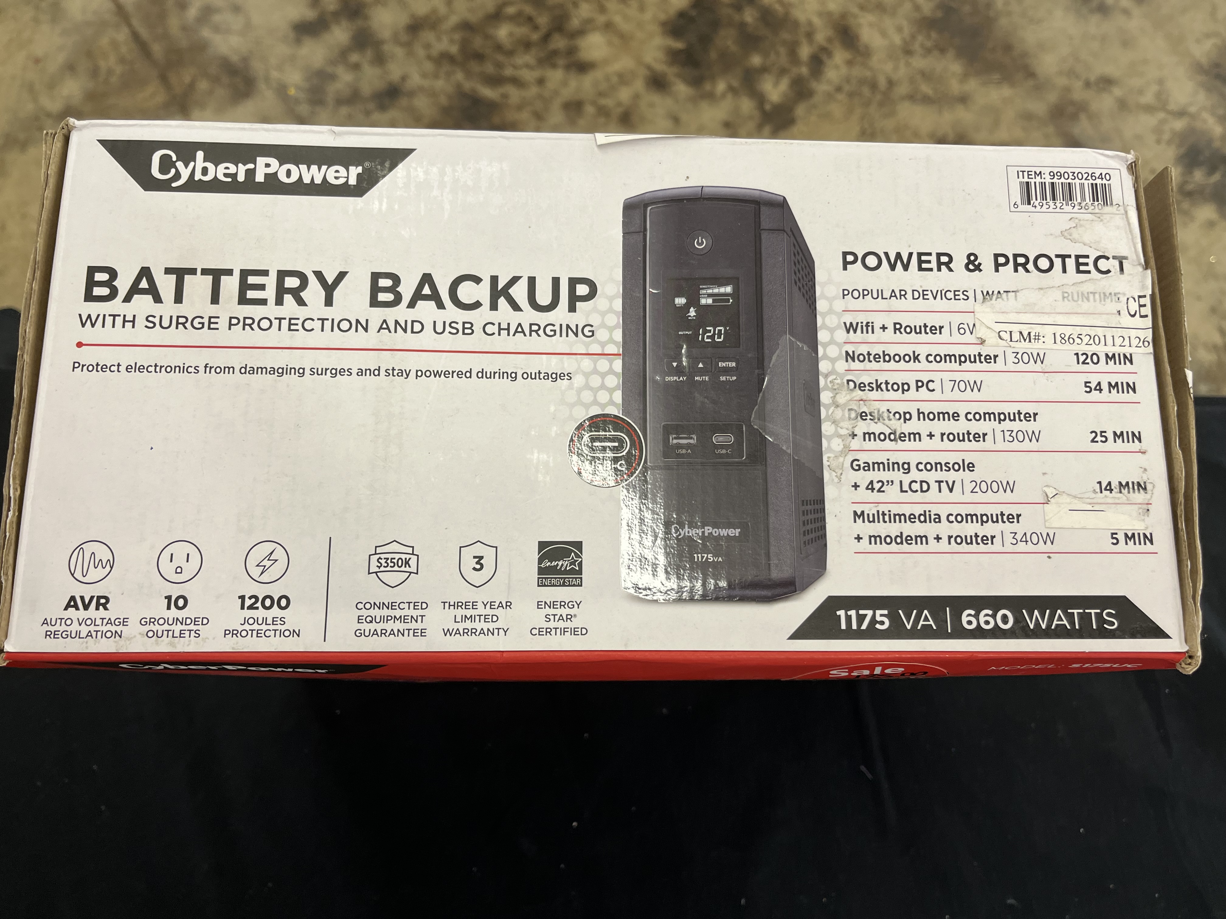 The CyberPower LX1500GAVR mini-tower UPS provides battery backup and surge protection for common home and office electronics. The LX1500GAVR is black and features an LCD control panel to quickly confirm operating status and alerts at-a-glance. Additional features include 10 grounded outlets (5 are surge protected only, 5 provide battery backup and surge protection), a 6 foot power cord, and it comes with a three-year limited warranty (including coverage of batteries) and a $500,000 Connected Equipment Guarantee.