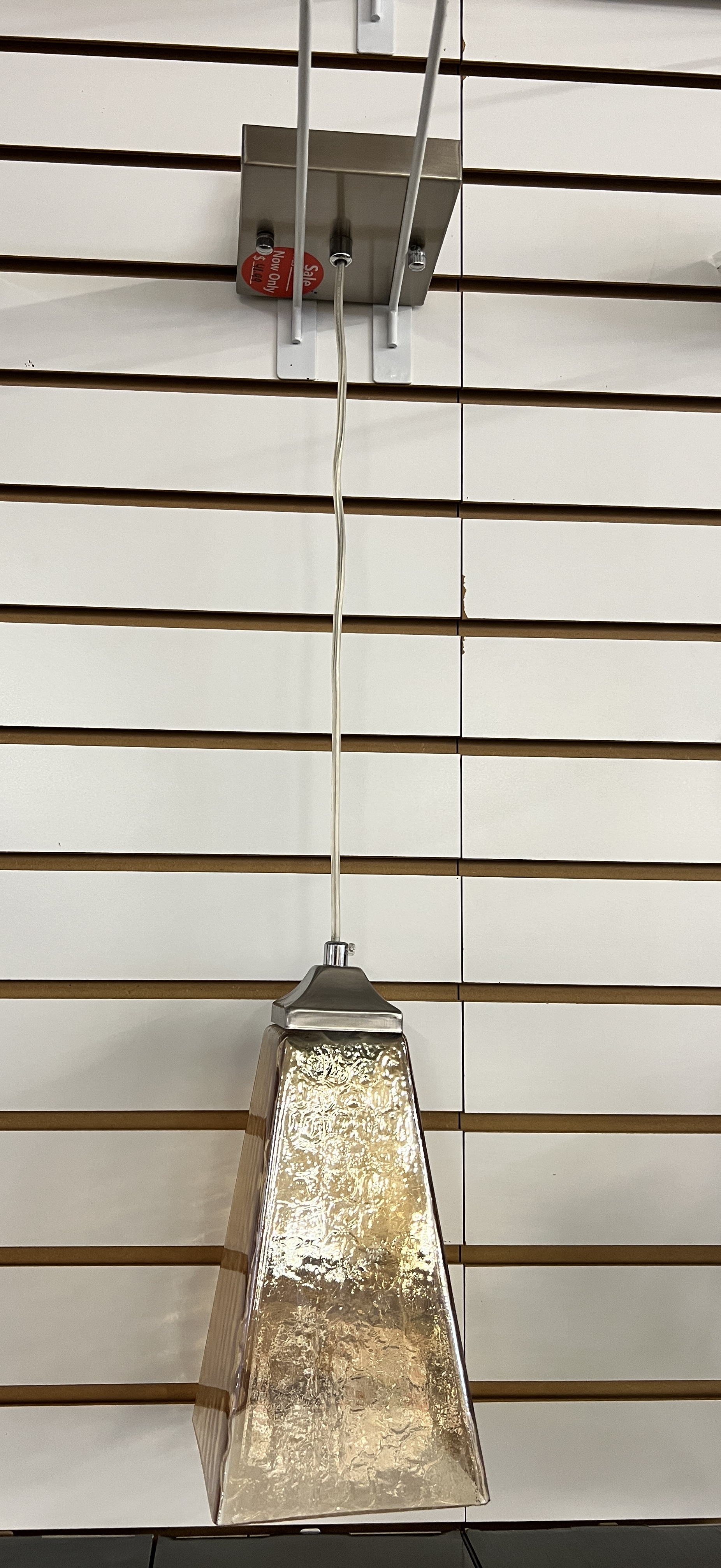 5" diameter x10" high glass shade reveals bulb; 60" of adjustable wire allows you to customize the hammered glass light fixture to your lighting needs and desired look