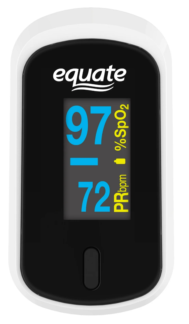 The Equate Fingertip Pulse Oximeter helps keep you up to date on your health. This easy to use fingertip system makes it easy to keep track of your oxygen levels and heartbeat. The fingertip reader gives an accurate reading every time while providing a more comfortable experience compared to using a wrist or armband monitor. Its backlit display makes it easy to read your results and the clear, color-coordinated blue numbers and yellow words let you know which number is the result for which function. To use, simply press the button on the top, slip onto your finger, and watch as you get results in no time at all! For an easier routine, start keeping track of your health with the Equate Fingertip Pulse Oximeter.Making the right health decisions can be challenging. With a complete range of products and simple solutions, Equate allows you to take care of your family with confidence.