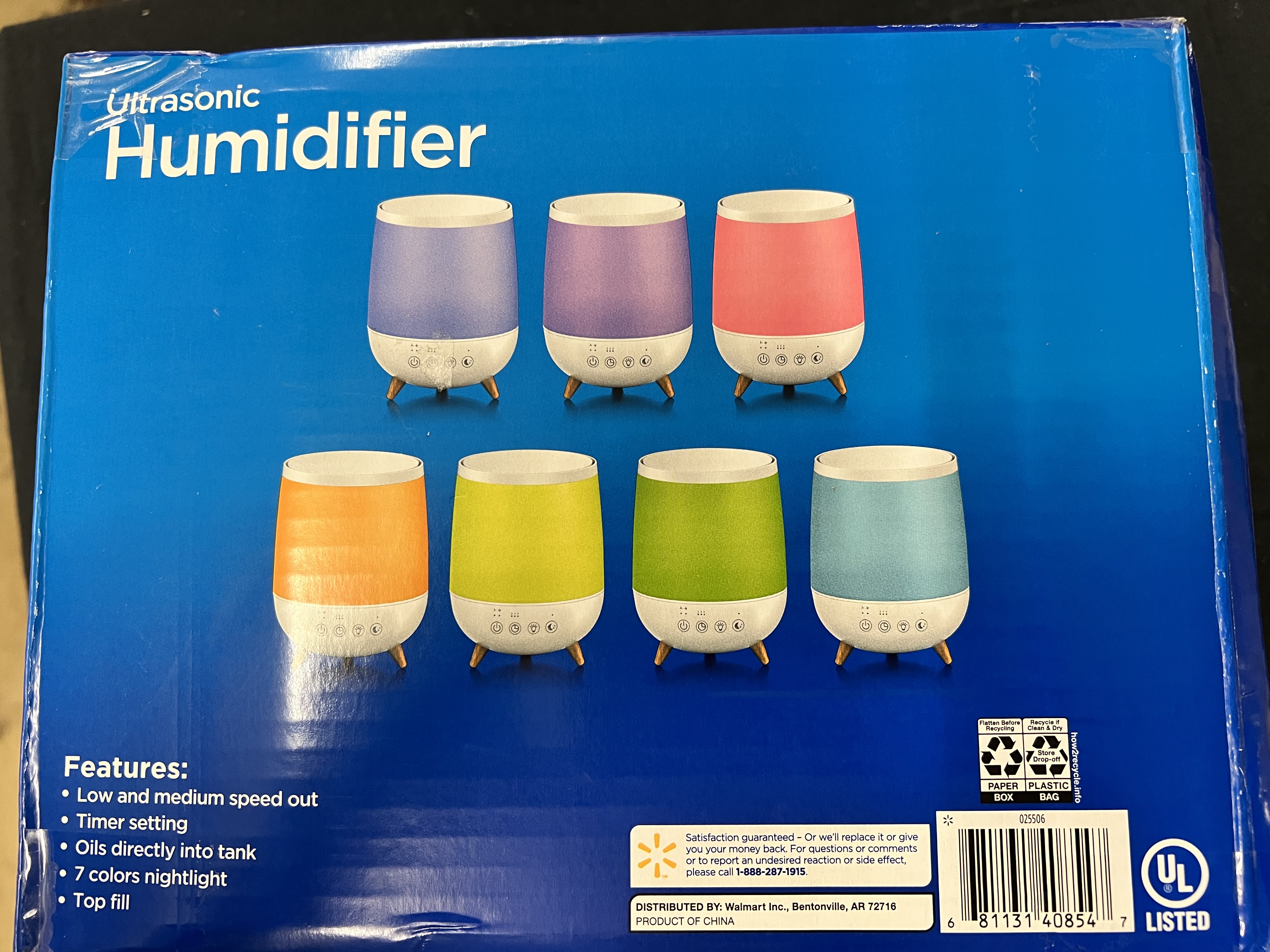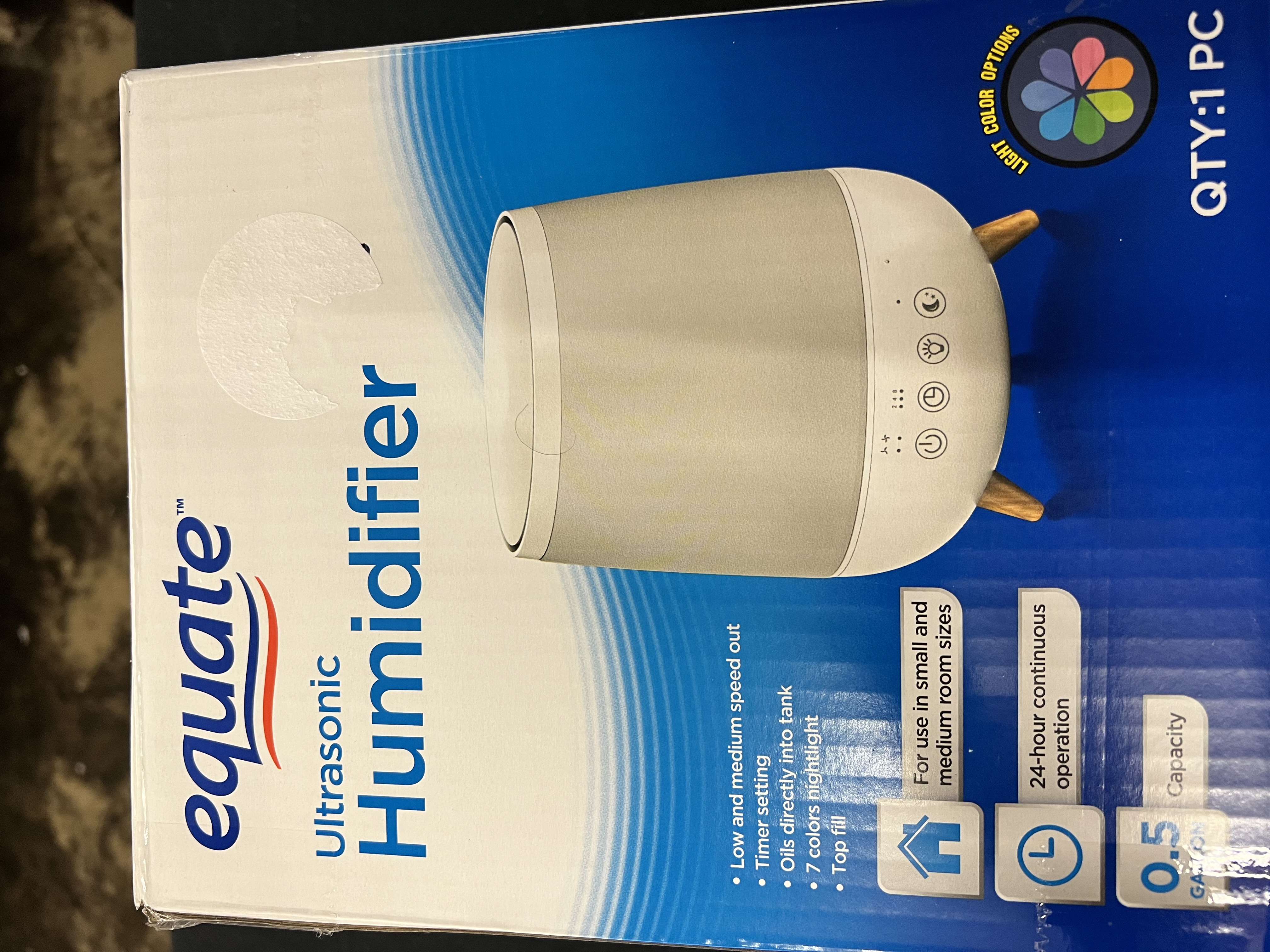 The Equate Ultrasonic Humidifier produces a rich moisture mist. It has two mist output speeds and timer setting, so you can choose the right setting for your home. Just drop a little essential oil into its water tank to enjoy an aromatic experience. It has seven colors that gradually change when you touch the lamp button or choose a fixed color by pressing the lamp button again. With a top fill design, adding water and cleaning is made easier. This humidifier is the perfect blend of style and function. The wood-look tapered legs and white color is sure to blend with your decor. Bring home the Equate Ultrasonic Humidifier. Making the right health decisions can be challenging. With a complete range of products and simple solutions, Equate allows you to take care of your family with confidence.