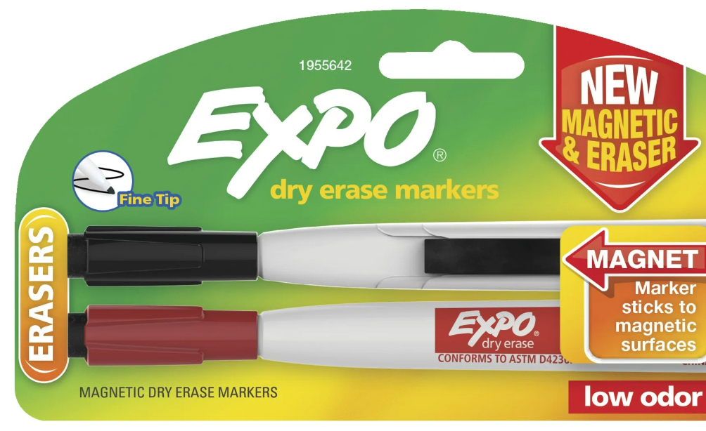 Store your markers securely on any metal surface. An integrated magnet locks the markers to metal-backed whiteboards and other metallic surfaces for care-free storage. The handy cap features a precise eraser. Each dry erase marker also uses low-odor ink thatas perfect for both the classroom and office.