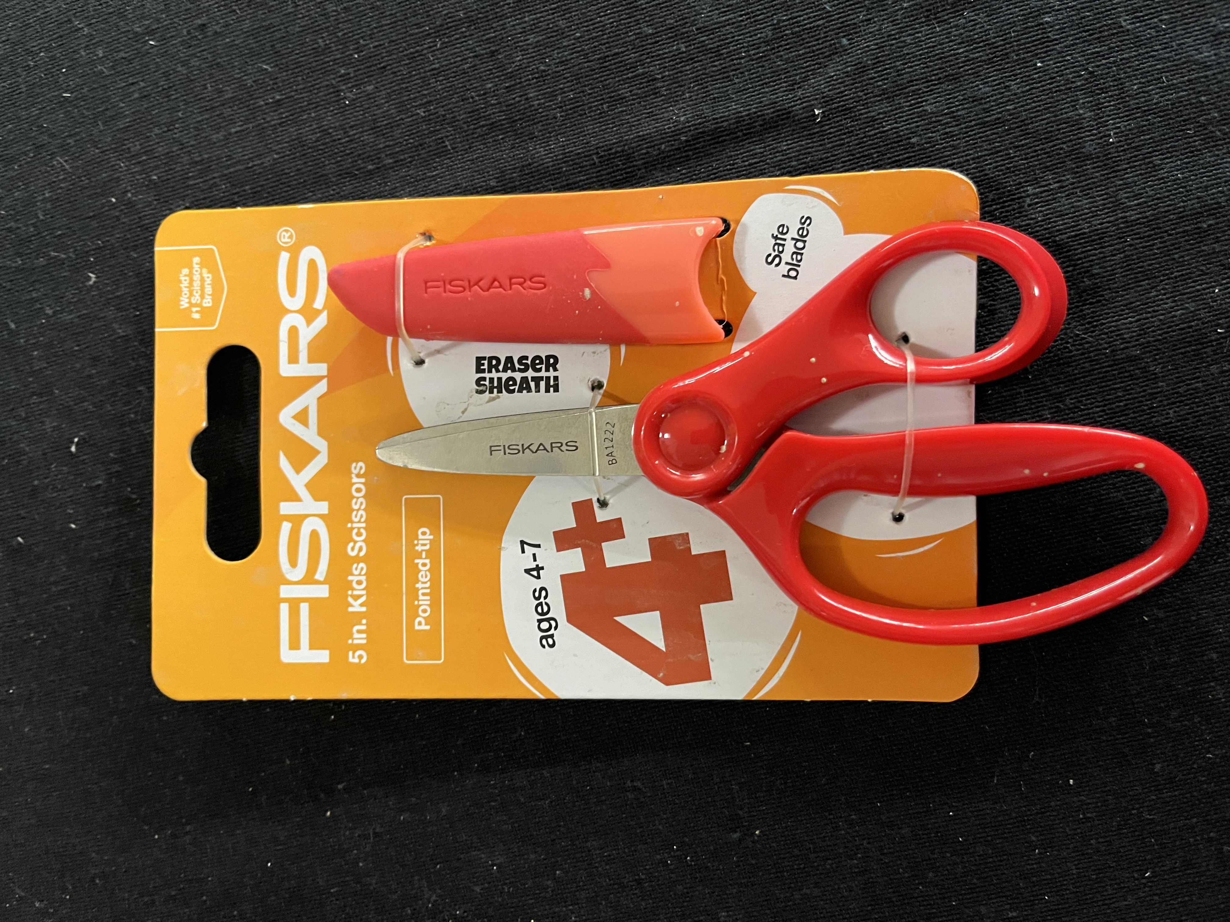 Every child is a creative genius, and Fiskars® Pointed-Tip Kids Scissors are thoughtfully designed for small hands and creative minds. These kids' scissors have safety-edge blades, a pointed tip for improved detail cutting, and a handle specially engineered for kids, all in bright colors they love. Teachers and parents love how easily the blades cut through all classroom materials, as well as the blades' innovative, safety edge with a safer blade angle. The larger finger loop and ergonomic thumb loop provide a natural, more comfortable fit for kids' fingers. An optimized opening angle helps kids open the blades without losing their grip for improved control. Additionally, the scissor handle is built to be in line with the blades to allow for better precision while cutting paper and other art materials in the air. These scissors are ideal for children four and up because every creative genius deserves the right scissors at the right age to express themselves.