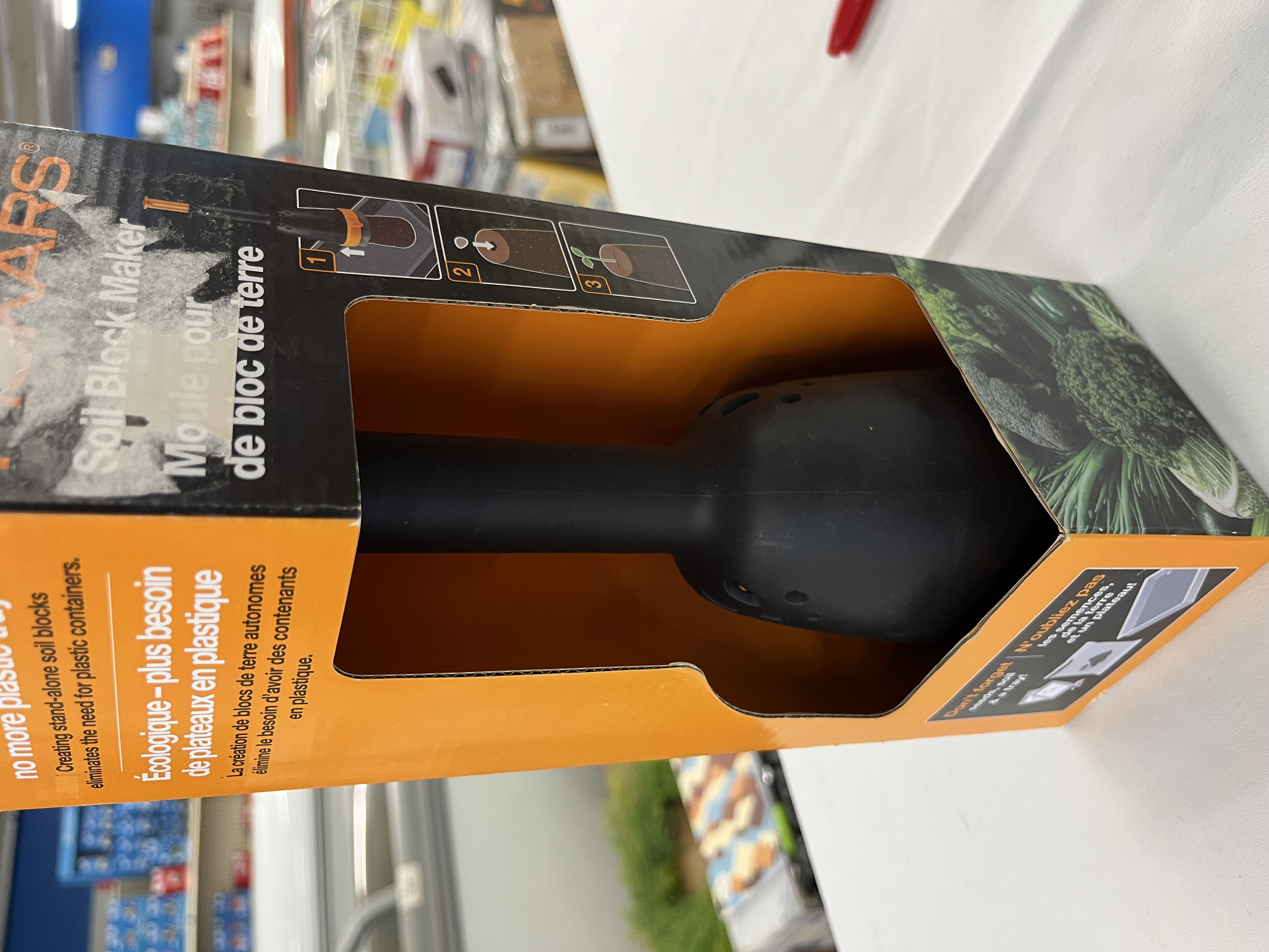 The Fiskars Soil Block Maker creates seed-starting soil blocks, which produce healthier seedlings and reduce the need for disposable seed starter trays and pods. The structure itself provides proper compression of seed-starting soil, ensuring each soil block has the right amount of air, moisture and consistency. Additionally, the tool places a hole at the top of each block for easy, optimal seed placement and depth