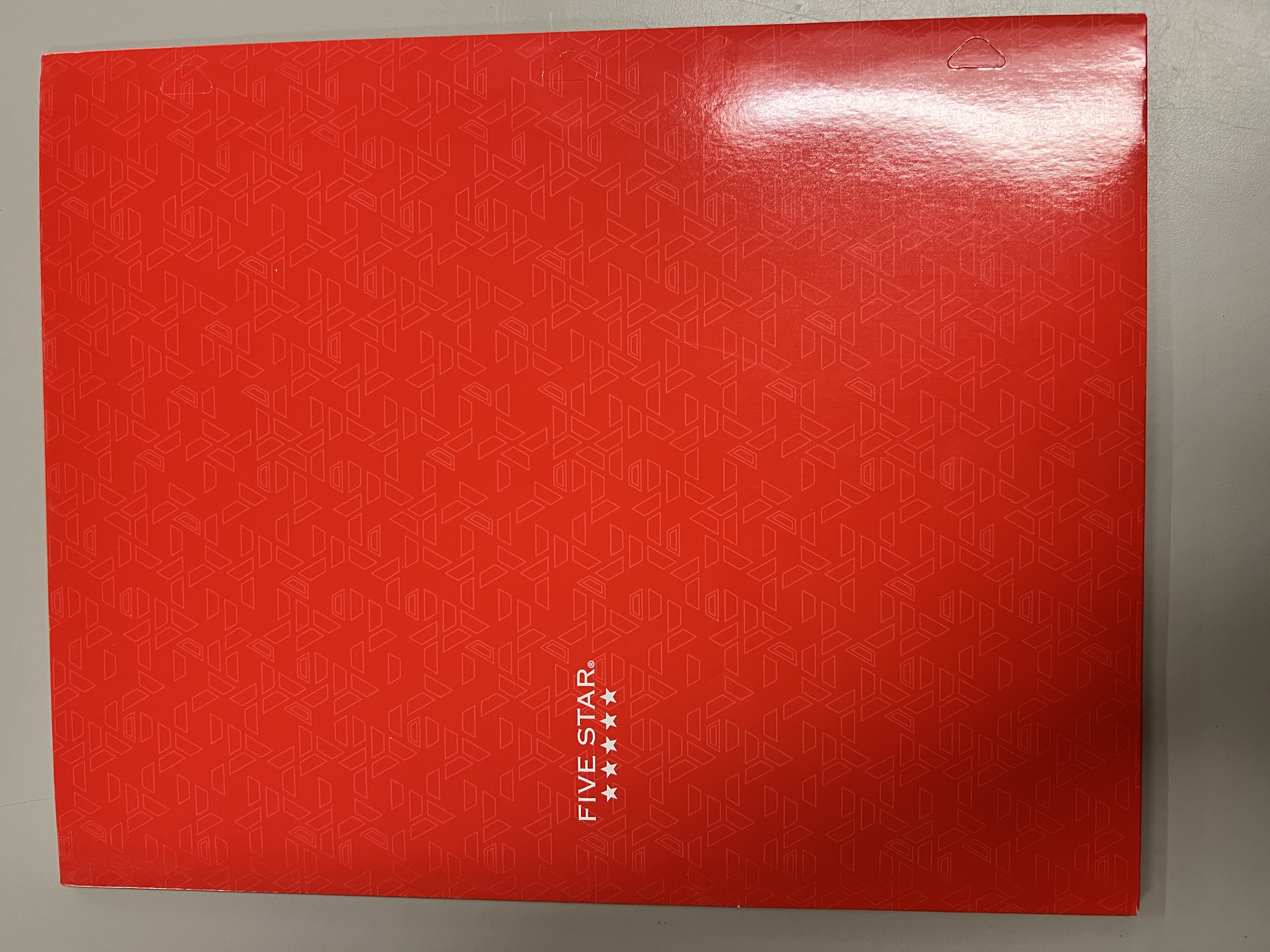 LASTS ALL YEAR. GUARANTEED!* Find more ways to succeed in all of your classes this year with the help of Five Star. The Five Star Pocket and Prong Folder helps you keep your papers organized throughout the entire school year. It is easy to stay organized by writing the subject name on the writable label. This helps you quickly identify the correct folder you need in an instant from your locker or backpack. Inside the folder, 2 pockets hold and store loose pages. Plus, 3 prongs let you securely attach 3-hole punched pages to help prevent them from getting lost or falling out of the folder. The pockets and prongs provide secure storage for 8 1/2" x 11" loose sheets and handouts. The durable, coated paper surface is water-resistant to help protect papers from accidental spills. Available in Fire Red.