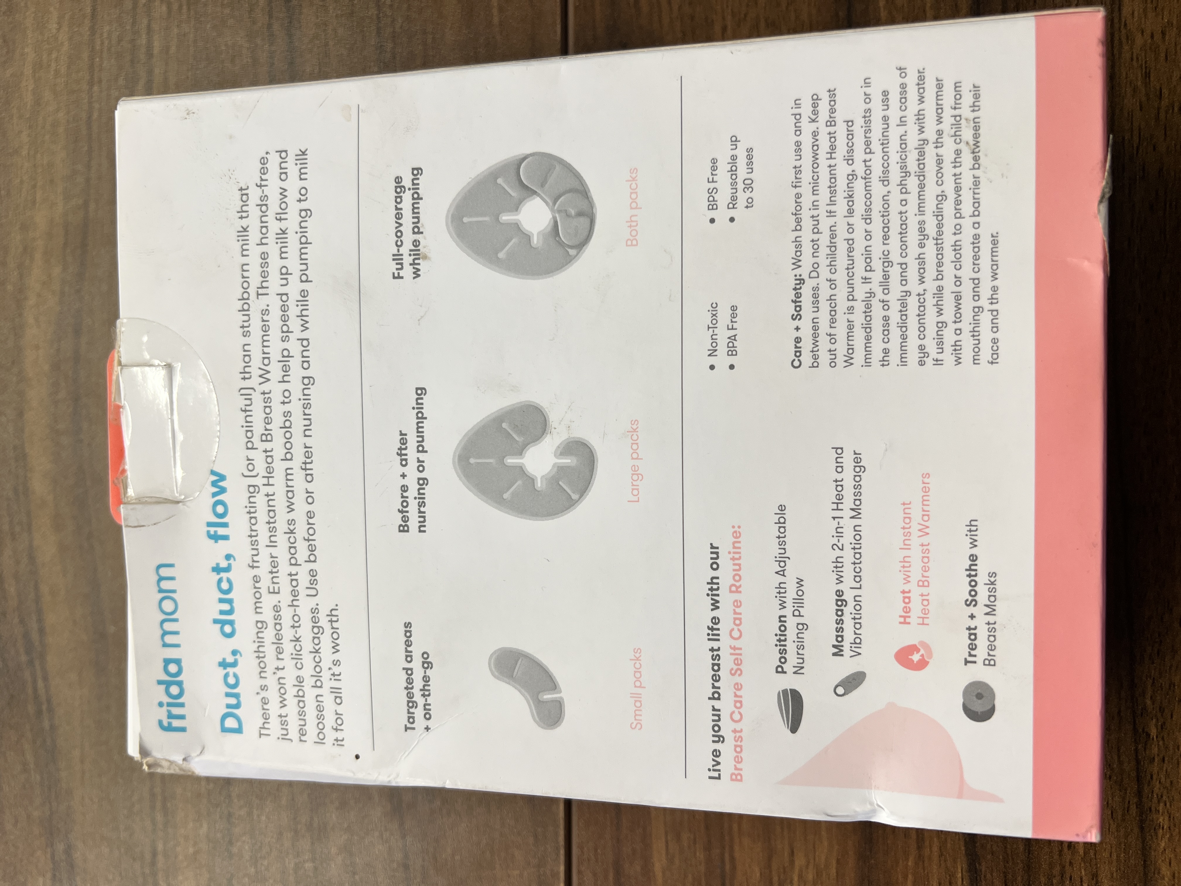 INSTANT HEAT BREAST WARMERS: Click-to-heat in just 3 seconds to stimulate milk flow for full boobs. No microwave needed. CONVENIENTLY REUSABLE: Just drop in boiling water to reactivate - up to 30 times. Heat lasts up to 20 minutes for each use. COMPATIBLE WITH MOST PUMPS: Use before or during nursing or pumping to get the most of your breastfeeding session. TWO SIZES: Use small packs for targeted areas or large packs for full coverage support. Can be used together or separately. DESIGNED FOR BREASTFEEDING MOMS: Flexible fit, non-toxic, BPA- + BPS-free. WHAT'S INCLUDED: 2 sets (4 heat packs) + 1 storage bag