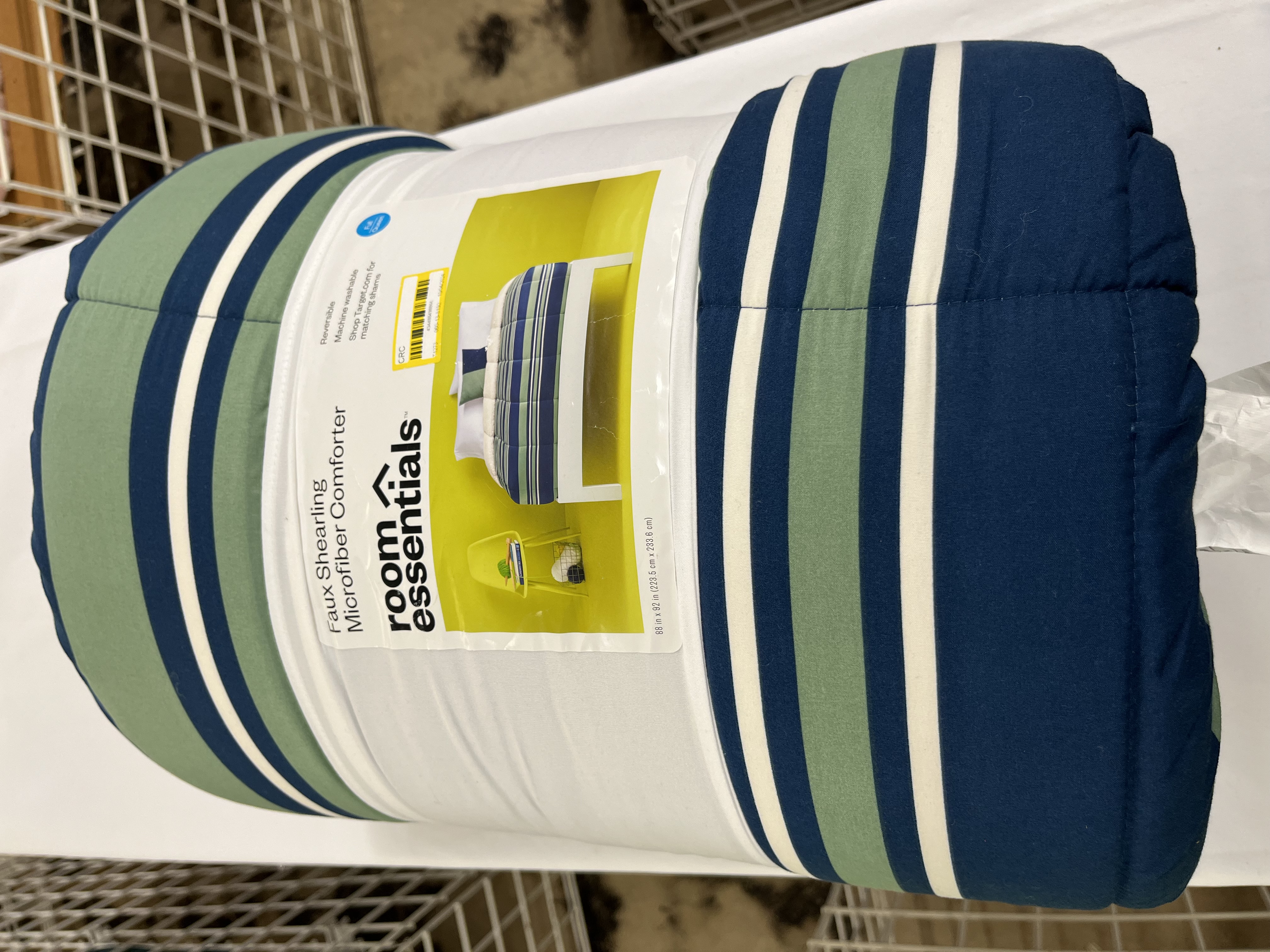 Escape to your dreamland in cozy comfort with the Sherpa Washed Microfiber Comforter from Room Essentials™. Boasting a super-soft, washed quilted fabric on one side and plush sherpa on the other side, this microfiber comforter feels soft against your skin and helps keep you cozy all night. Featuring a dual-hue design with white sherpa at the reverse and a solid quilted front, this sherpa comforter instantly enlivens your sleeping space. Simply coordinate it with a matching sham, contrasting sheets and fluffy pillows to transform any bedroom in your home into a cozy and colorful relaxing haven. • Sherpa comforter brings cozy comfort to your bed space • Washed quilted fabric on one side for soft feel • Sherpa flipside for plush and cozy feel • Solid front and sherpa reverse add chic style to your bedroom decor • STANDARD 100 by OEKO-TEX® certified