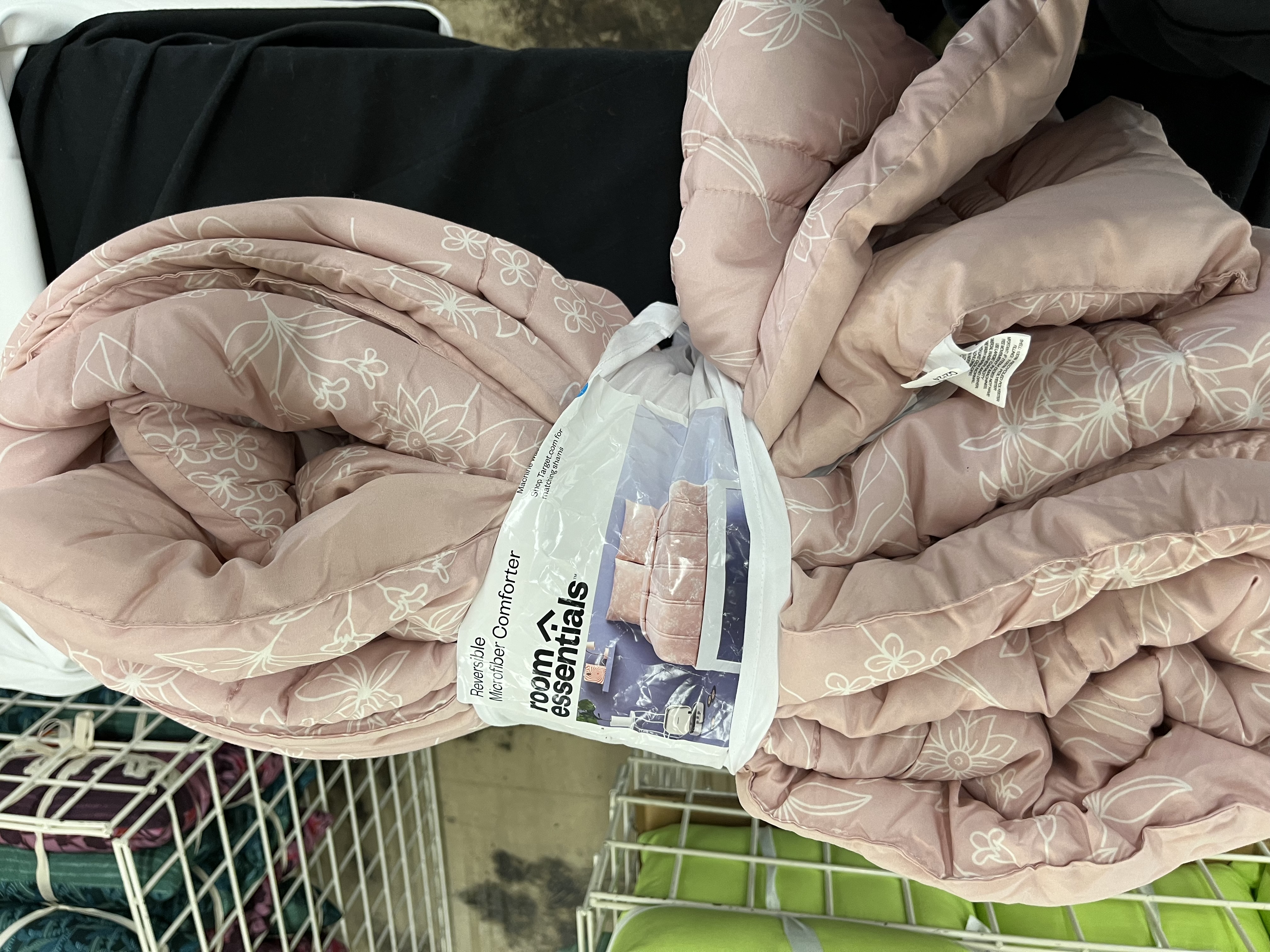 This Lofty Microfiber Printed Comforter from Room Essentials™ brings comfort and extra appeal to the top of your bed. It features a microfiber construction with soft filling to offer cozy and comfortable use, and it's machine washable for easy care. Pair with matching pillow shams and sheets to complete the coordinated look. Printed lofty comforter • Microfiber construction with soft fill • Year-round use • Machine wash and tumble dry • 100% recycled polyester shell (polyester fill) • STANDARD 100 by OEKO-TEX® certified