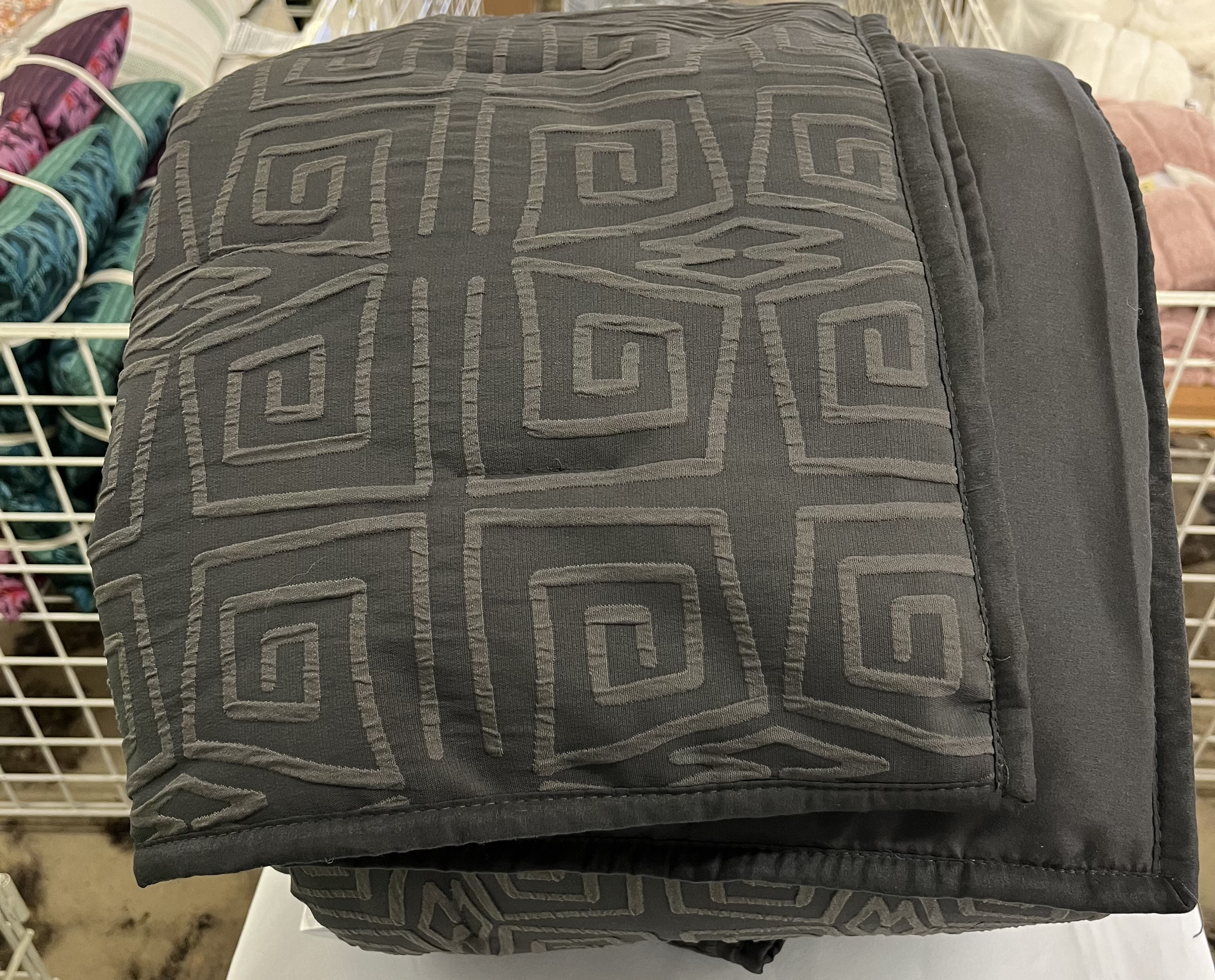 Give your bedroom a modern update with this Geo Quilt and Sham Set from Opalhouse™ designed with Jungalow™. This geo pattern quilt bedding set includes a quilt and matching pillow shams for a cohesive look. The lightweight woven fabric with soft filling offers cozy comfort, and a six-inch envelope closure on the sham holds it securely in place while still allowing for easy removal. Pair it with sheets and decorative pillows of your choice to create a stylish bedspread. • Geo quilt and sham set • Includes a quilt and 2 shams • Soft woven construction with fill • 6in inner envelope • Machine wash • STANDARD 100 by OEKO-TEX certified