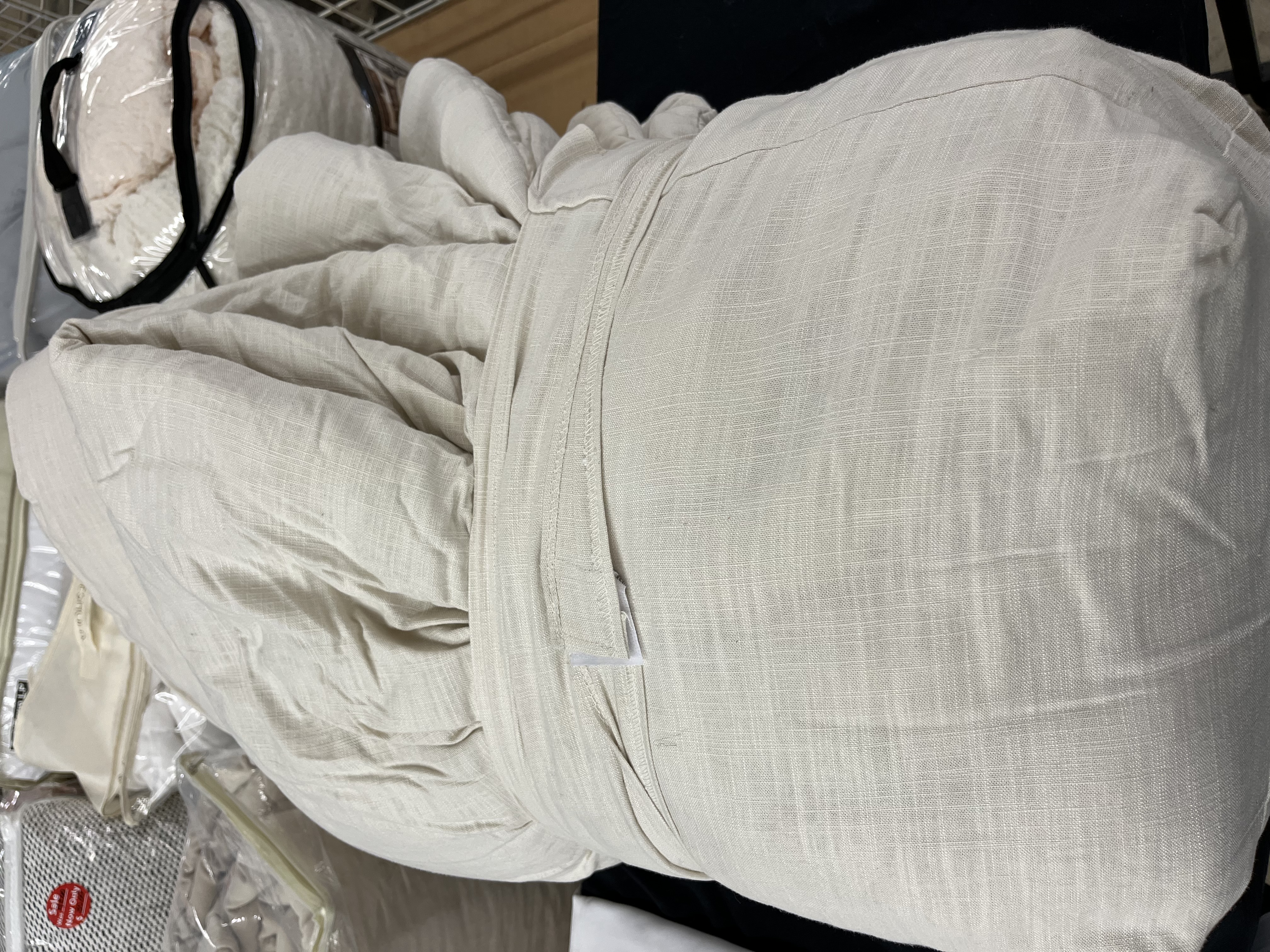 Bring a touch of luxury and plenty of comfort to your bedding arrangement by adding the Heavyweight Linen Blend Comforter & Pillow Sham Set from Casaluna™. This heavyweight comforter and sham set features a classic and sophisticated look that's easy to incorporate with existing bedroom decor, complete with solid color options that allow you to effortlessly style the rest of the space to your liking. Draped linen has been blended with rayon for an exceptionally soft feel, and a 100% cotton sateen backing adds a sleek, polished finish. Plus, the down alternative fill wraps you in calming comfort for an oasis you'll love coming home to night after night. You'll appreciate that the comforter features box quilting to help minimize shifting, and the raw-edge shams close with zippers for a secure fit. As a final touch of thoughtful detail, the machine-washable construction allows for easy cleaning and care to keep it good as new. • Heavyweight comforter and pillow sham set comes with 1 comforter and 2 shams • Draped linen blended with rayon for an invitingly soft feel • 100% cotton sateen backing lends a touch of luxury • Down alternative fill for calming comfort • Machine-washable design helps you keep it good as new • STANDARD 100 by OEKO-TEX® certified