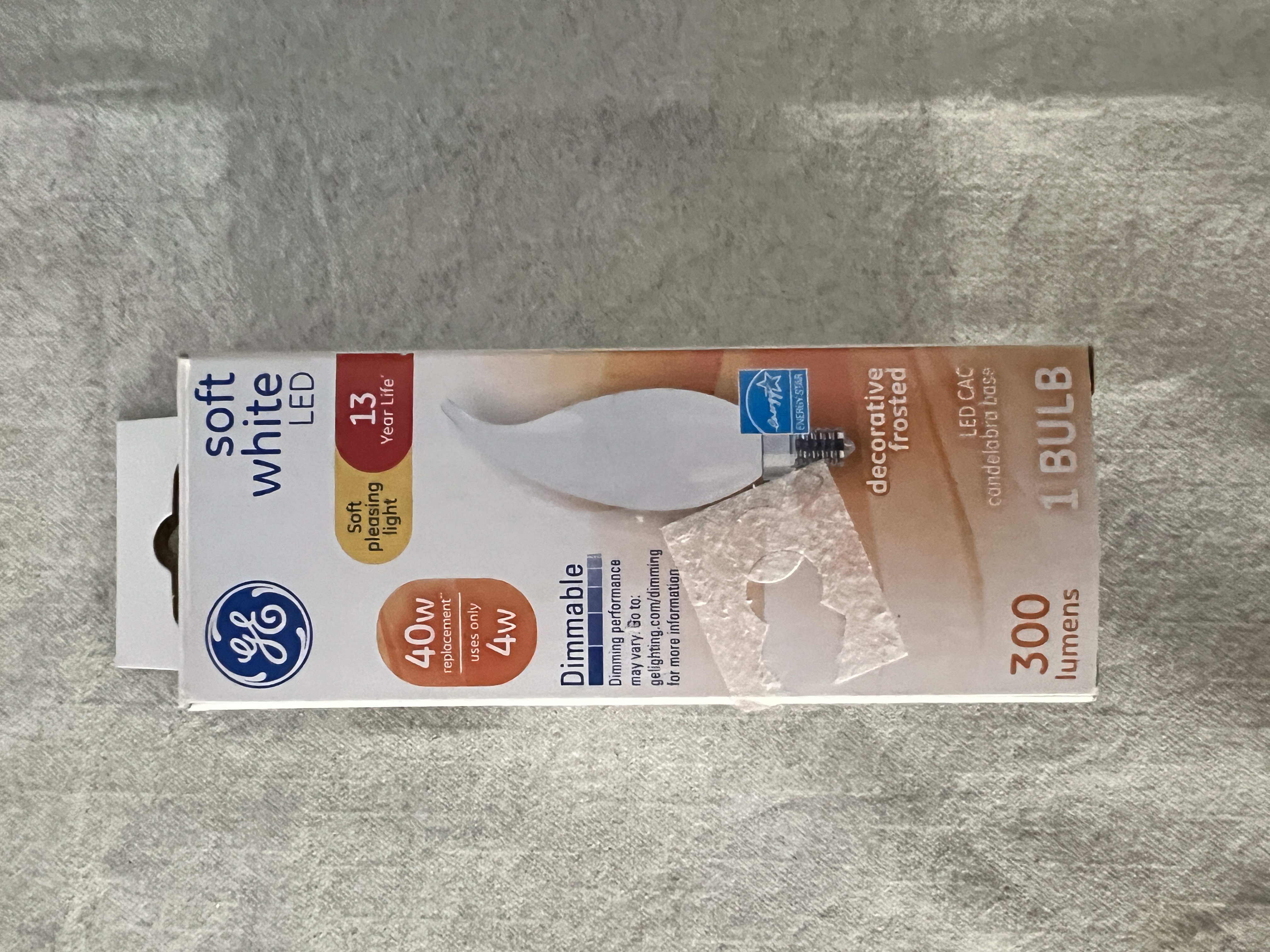 GE's Soft White LED 40-Watt Replacement White Deco light bulb offers outstanding energy efficiency, long-lasting performance and just-right brightness, all in one package. It is dimmable and illuminates your home with soft, warm light. Use this candelabra-base GE LED decorative bulb in indoor chandeliers, sconces and fixtures where the bulb is visible. Thanks to its aesthetic design, GE Soft White LED 40-Watt Replacement White Deco light bulb compliments your fixture and adds a decorative touch even when the light is off. When turned on, its long life and low energy use will help you save money on energy.