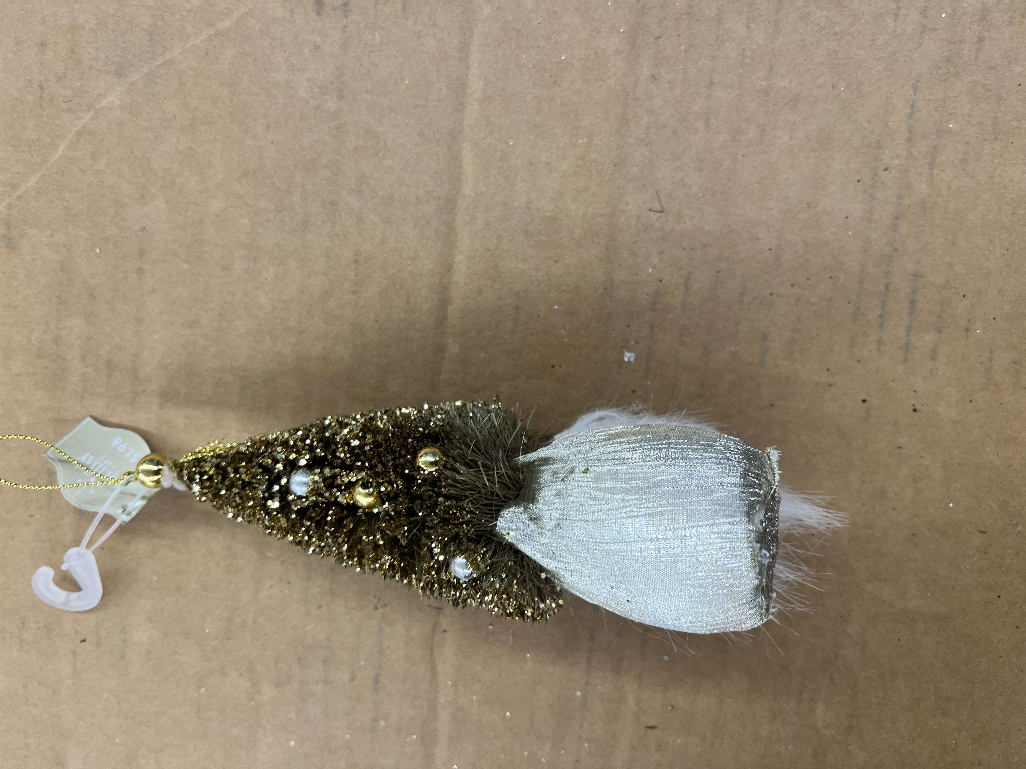 Holiday Time Gold Gnome Tree Christmas Ornament Festive ornament Product size: 7" Material: Plastic Color: Gold/White/Silver Use to decorate your tree Add to a stunning seasonal decoration Attached loop at the top makes it easy to display For indoor use Check out all the joyful Christmas decorations from Holiday Time like inflatable characters, twinkling lights, colorful wreaths, and more