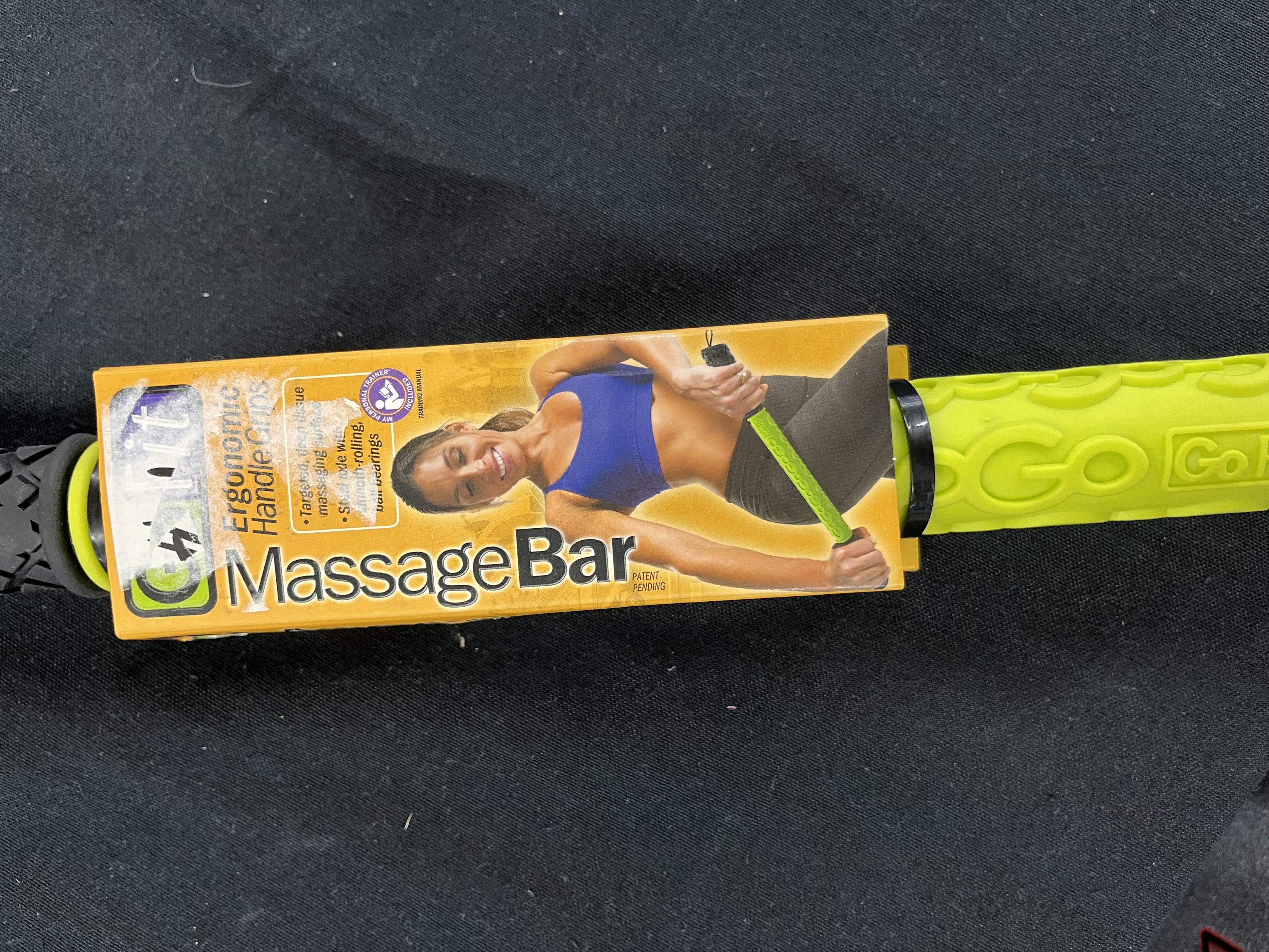 Flexibility and recovery are vital components for any training program. A great way to increase flexibility and speed up post workout recovery is through target-point therapy or self massage. The GoFit Massage Bar is a great tool to awaken tired muscles pre-workout and to help knead aching muscles, post workout. No matter how hard you workout, run, ride, or play, the GoFit Massage Bar is a great way to relieve stress and rejuvenate muscles. The GoFit Massage Bar is also a great tool for self massage of the lower back, neck, shoulder area, and any other tension points that are in need of release or injury prevention. Features ergonomic handles and super smooth ball-bearing roller system.