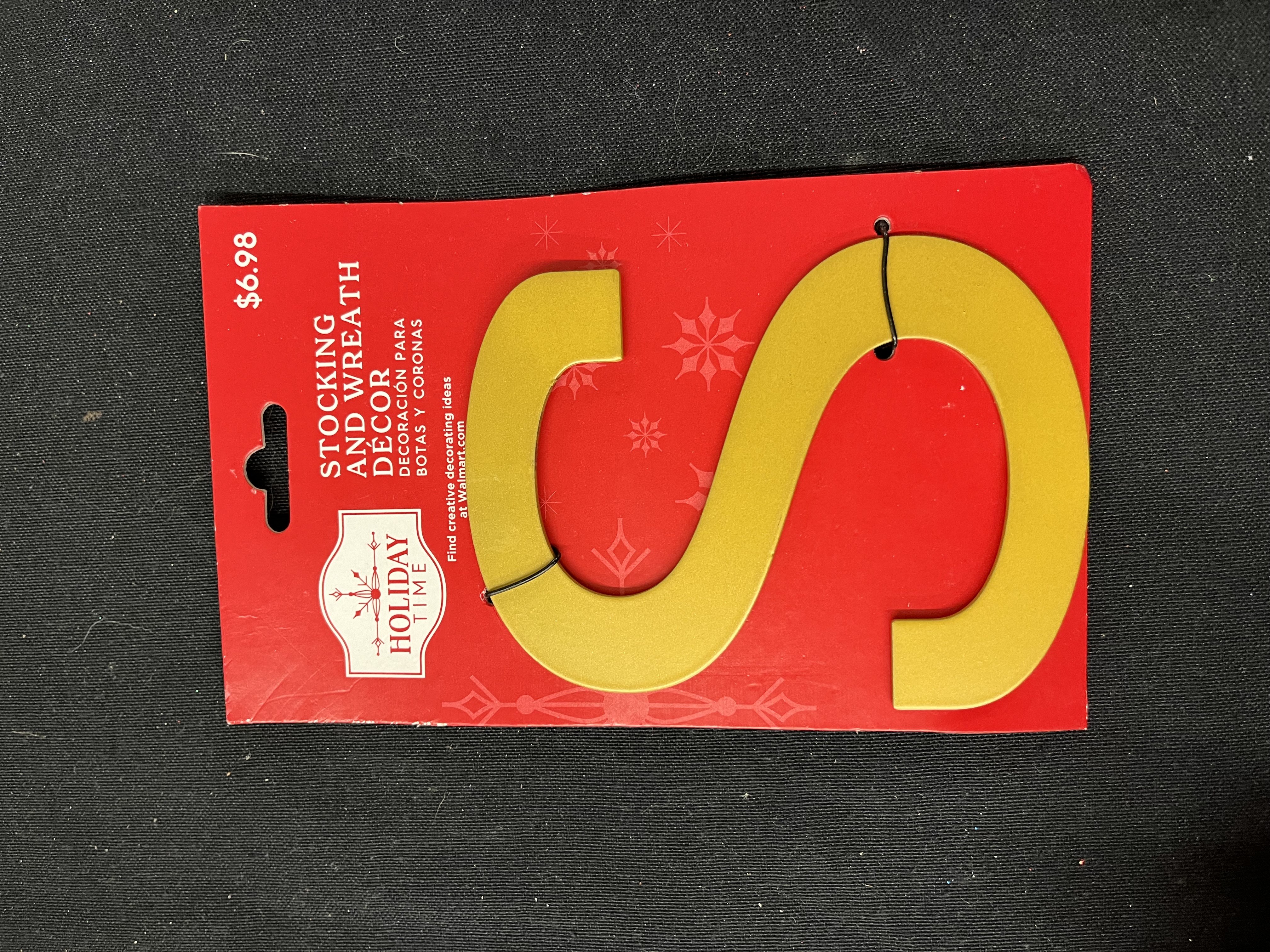 The Holiday Time Gold Letter Stocking Ornament is a festive and decorative piece that adds a touch of holiday cheer to any home. This stocking ornament is a wonderful way to make your stockings unique. The attached magnets on the back made it easy to add and remove. It's made of durable materials and has a modern look that is perfect for your holiday decor. It measures approximately five inches, making it a generous size for you to personalize your stockings. For more merry and bright decorations and accessories, check out other Holiday Time products like wreaths, stockings, ornaments, lights, yard inflatables, and more. Whether you are hosting a holiday gathering or just want to add some seasonal flair to your home, the Holiday Time Gold Letter Stocking Ornament is an excellent choice.