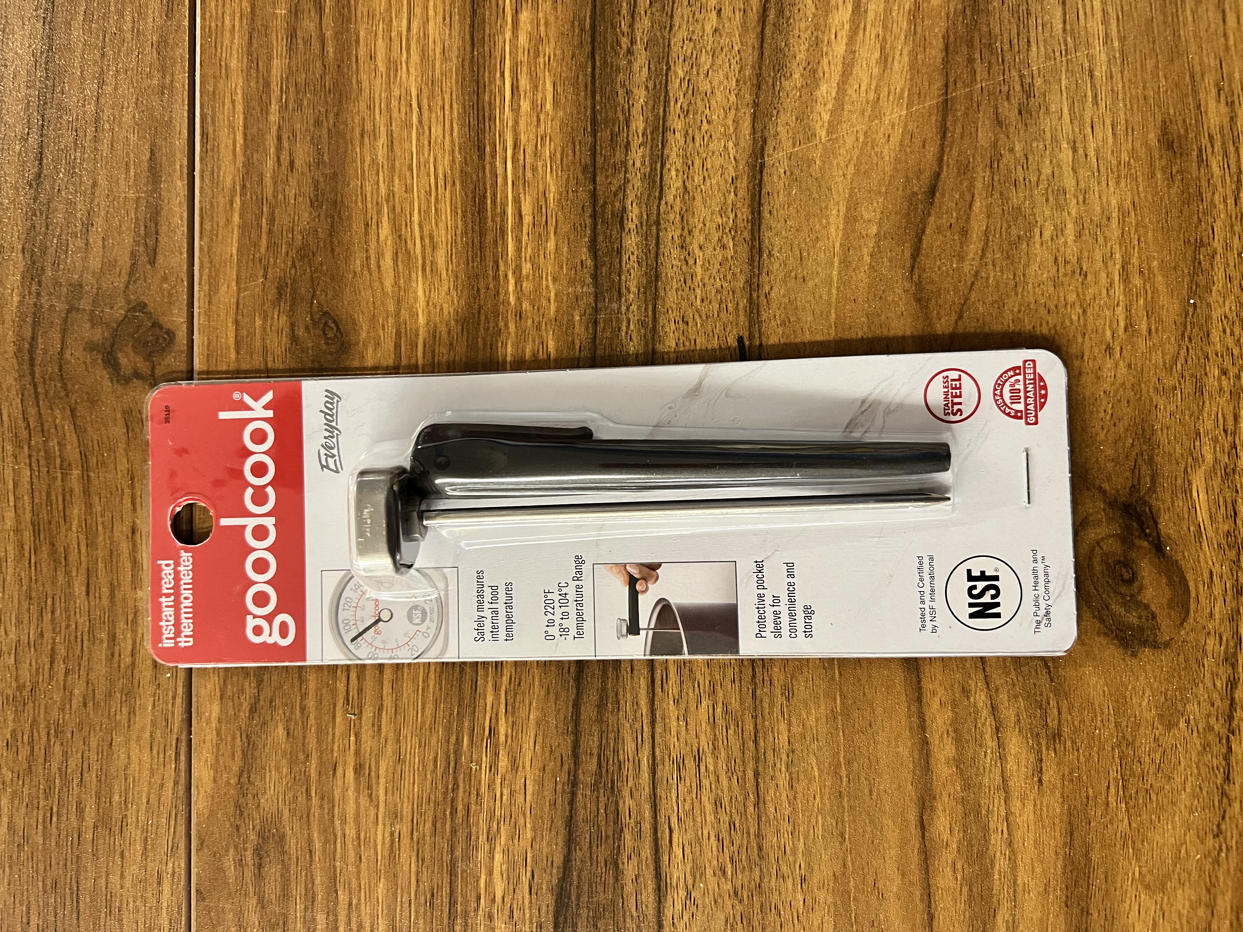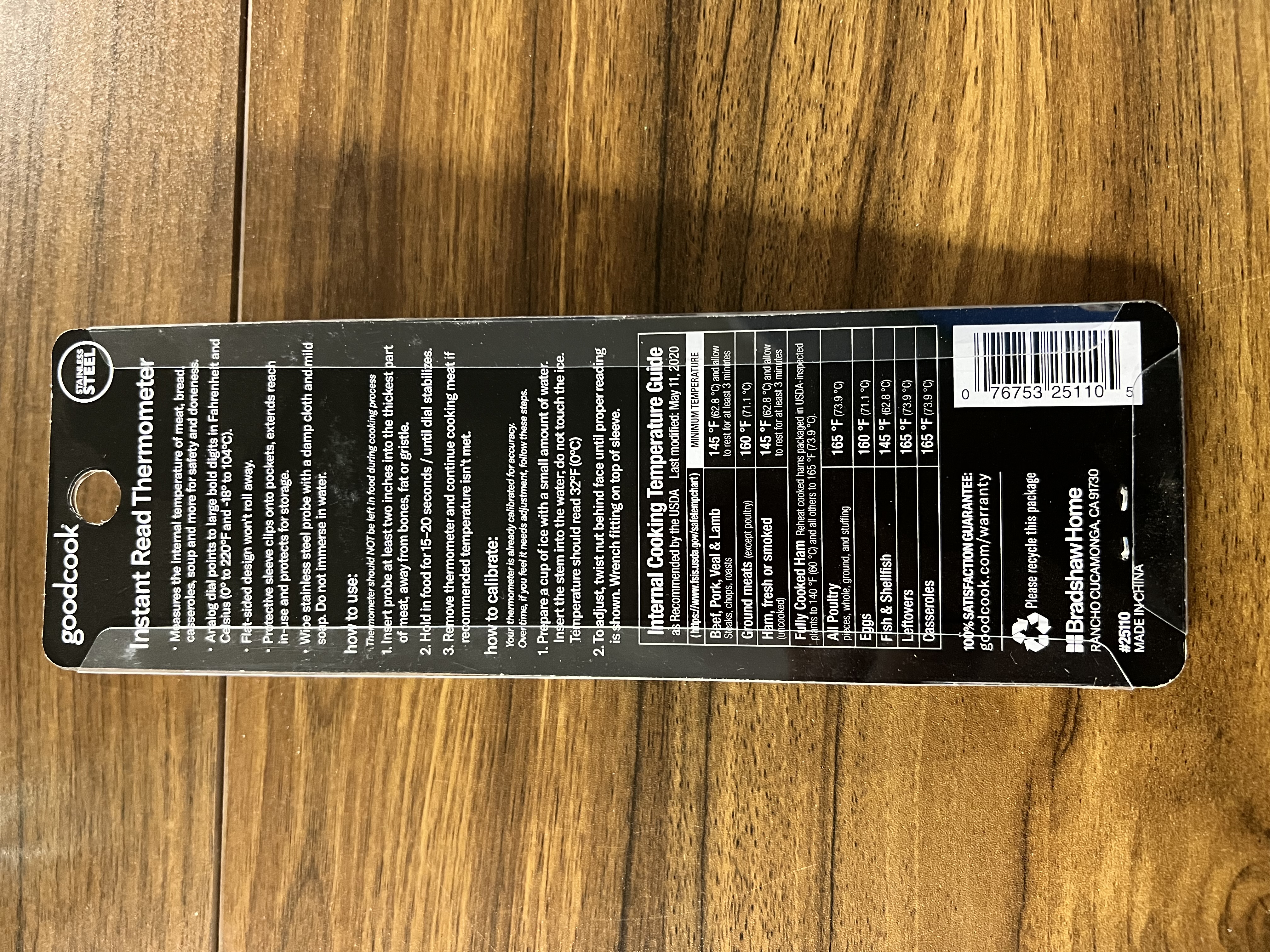 Accurately measures food temperatures between 120 to 220 degrees F Provides precise numbers for better and safer cooking results Stainless steel probe measures the internal temperature of meats as they cook Temp dial provides meat temperature and corresponding doneness at the same time Features a turning screw to calibrate thermometer periodically as needed This product contains: Aluminum, Chromium, Copper, Iron, Manganese, Molybdenum, Nickel, Phosphorus