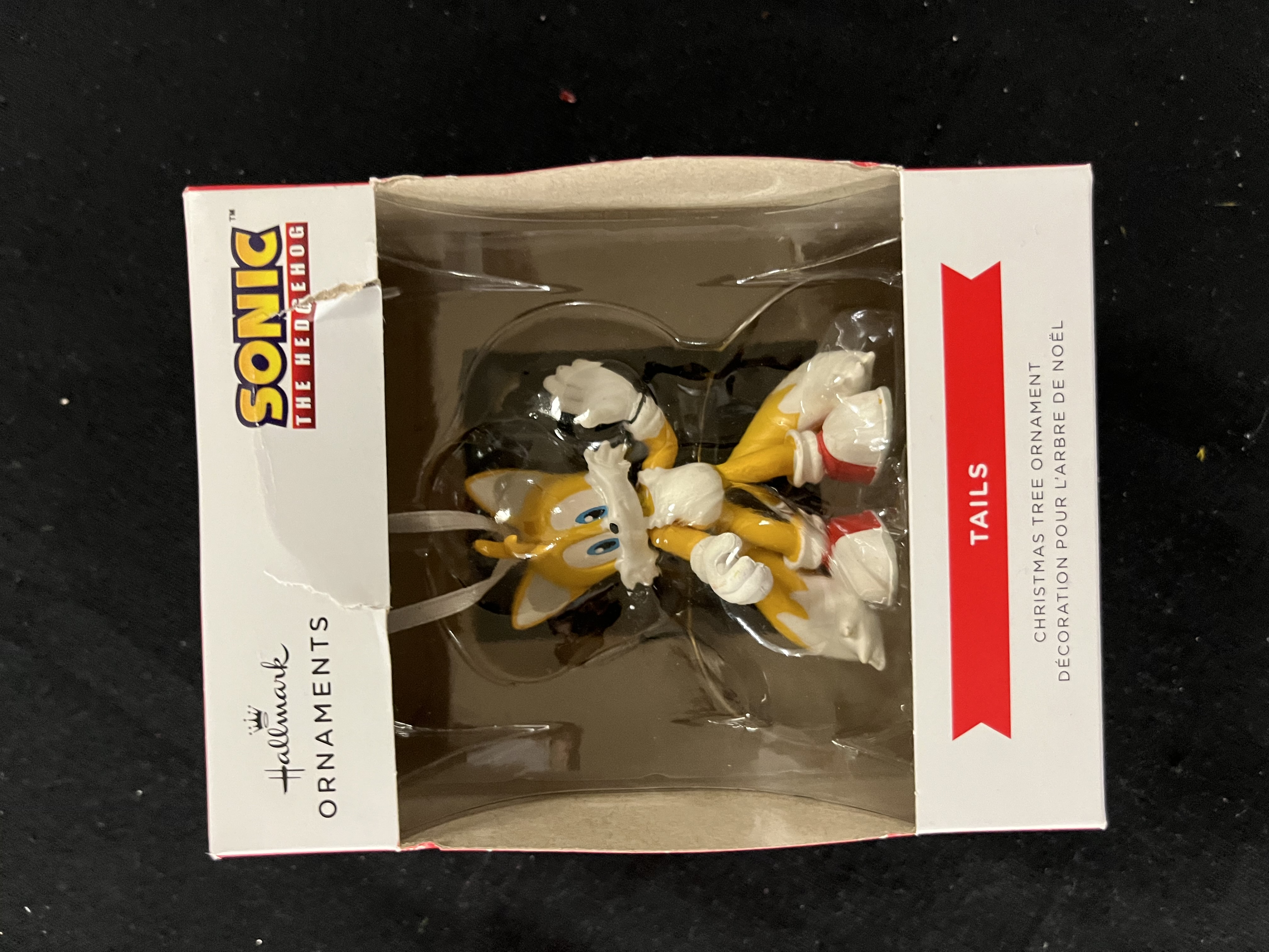 Sonic the Hedgehog's awesome sidekick and friend, Tails, is captured in a classic pose in this fun Christmas tree ornament. With a friendly wave and his rotor-like twin tails relaxed, the fox also known as Miles Prower prepares to help defeat enemies Knuckles and Dr. Robotnik. Makes a great gift for a ride-or-die friend. Hallmark Ornaments are a great way to commemorate hobbies, life events and individual interests in entertainment, sports and more. Each festive and collectible ornament is perfect for sharing with family and friends. Get spun up for some holiday fun with this Hallmark Christmas ornament of Tails, Sonic the Hedgehog's humble sidekick and indispensable partner in fighting Shadow and the evil Dr. Eggman. Great Christmas gift idea for fans of Tails and the Sonic The Hedgehog video games and movies. Resin ornament features hanger attachment.