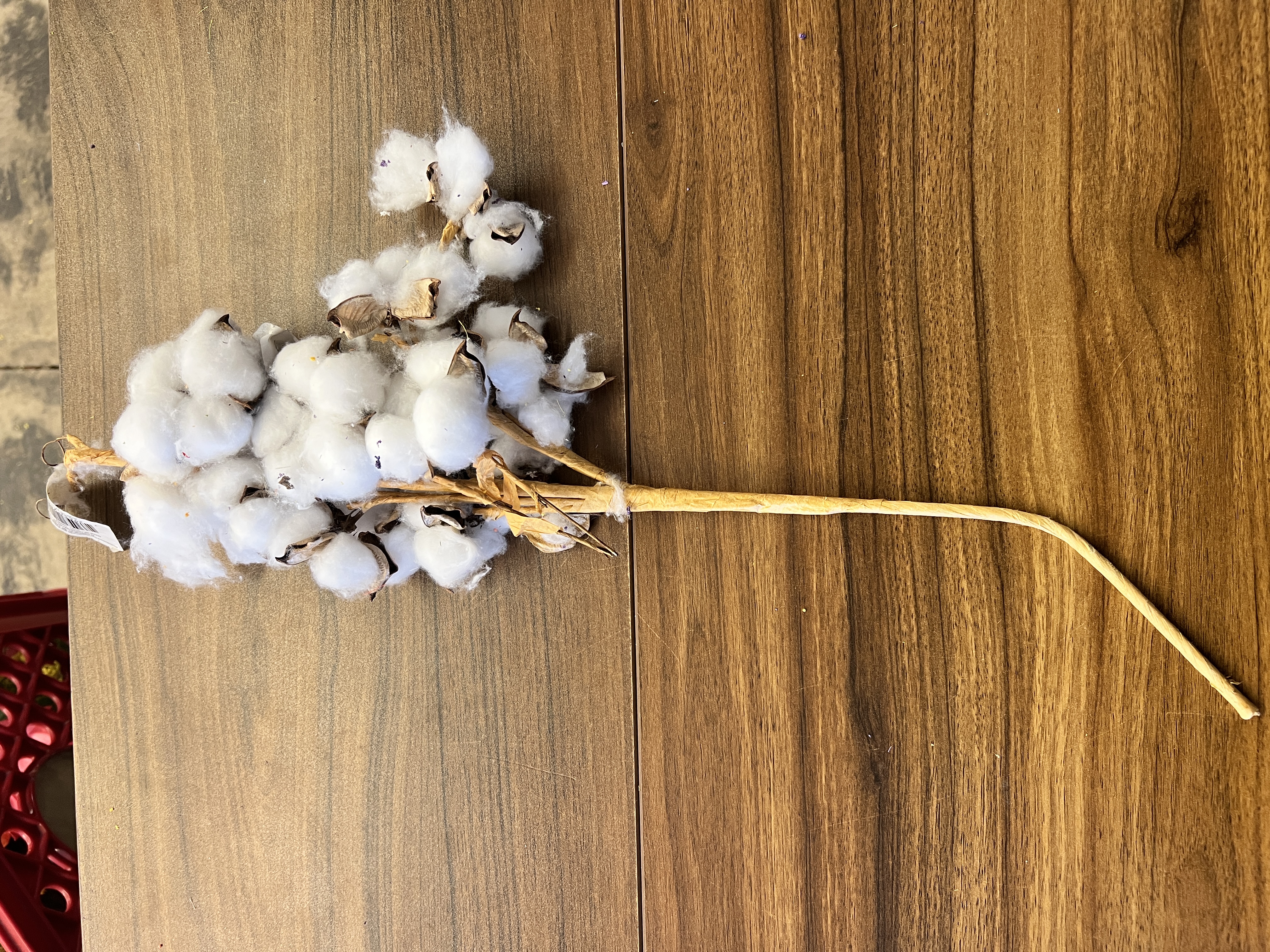Hampton Art Cotton Stem. Offer your space a touch of the great outdoors with Cotton Stem. This realistic stem is wrapped in brown paper with clusters of soft cotton buds on individual stems that have wire so you can move them as you'd like. Place it in a vase with other stems for a stunning, long-lasting centerpiece without the pesky water!