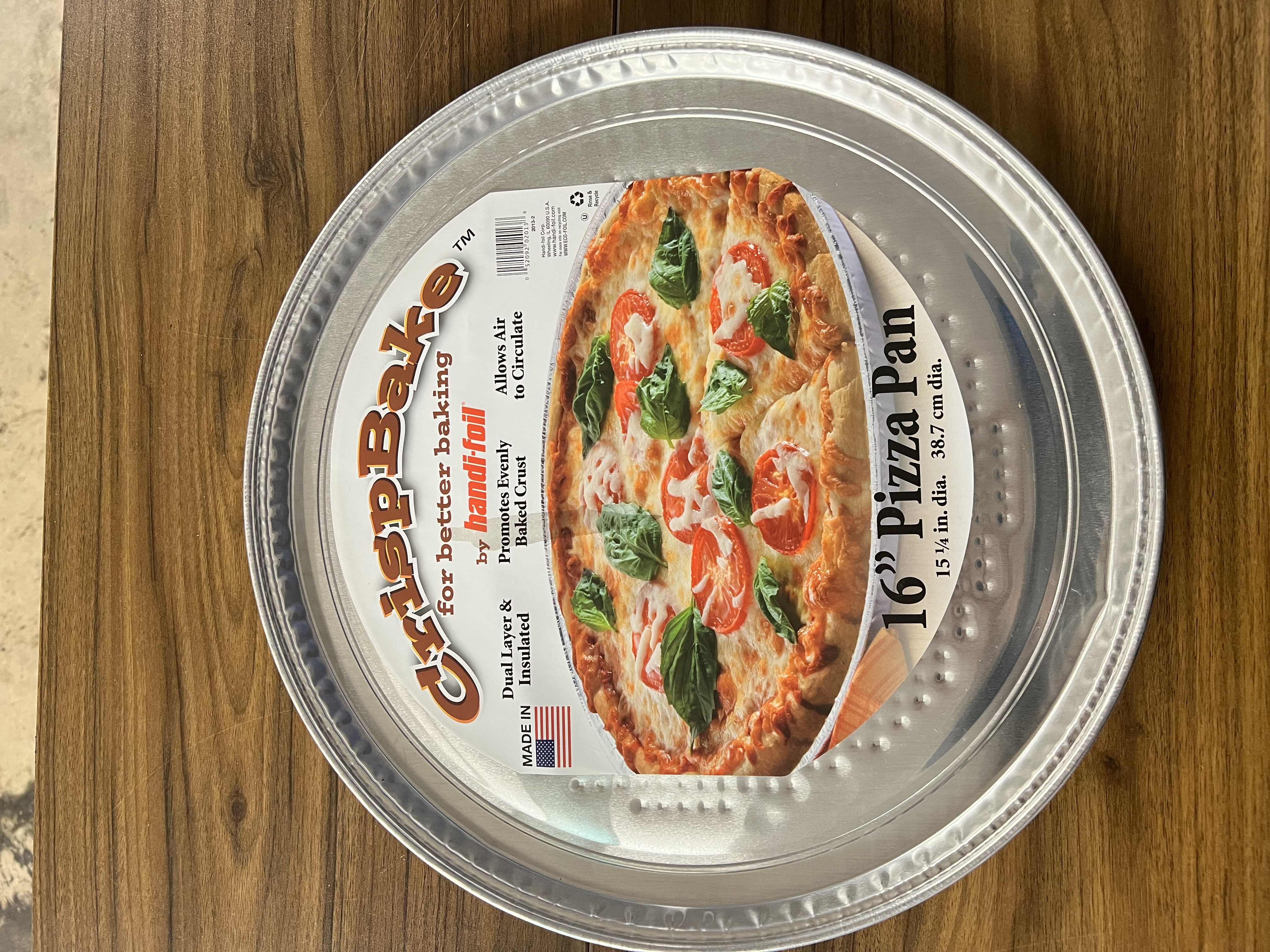Handi-Foil Heavy Duty Aluminum Foil Giant Pizza Pan is sturdy enough to handle any pizza toppings you can create. The 15.25-inch diameter is the ideal size for your next pizza party. Made of dual layers of heavy-duty aluminum for quick and even heating. The dual layers allow air to heat and circulate to prevent burnt crusts. Use for home-made or frozen pizzas. Clean-up is easy and eco-friendly, just rinse and recycle. Spend more time at the party and less time scrubbing pans in the kitchen. Kosher certified by the Orthodox Union.