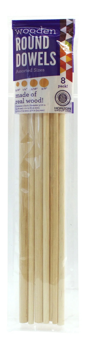 Hello Hobby Wood Dowels are the perfect crafting essential for any and all creations! This 16-pack of natural dowel rods is a great starter set, or an addition to your existing craft supplies. This set includes 16 round wooden dowels, each measuring 12 by 3/16-inches — small enough for easy-peasy arts & crafts projects and large enough for a sturdy hold! Unleash your creativity and make pinwheels, towers, 3D models and more! Great for crafters ages 3 and up.