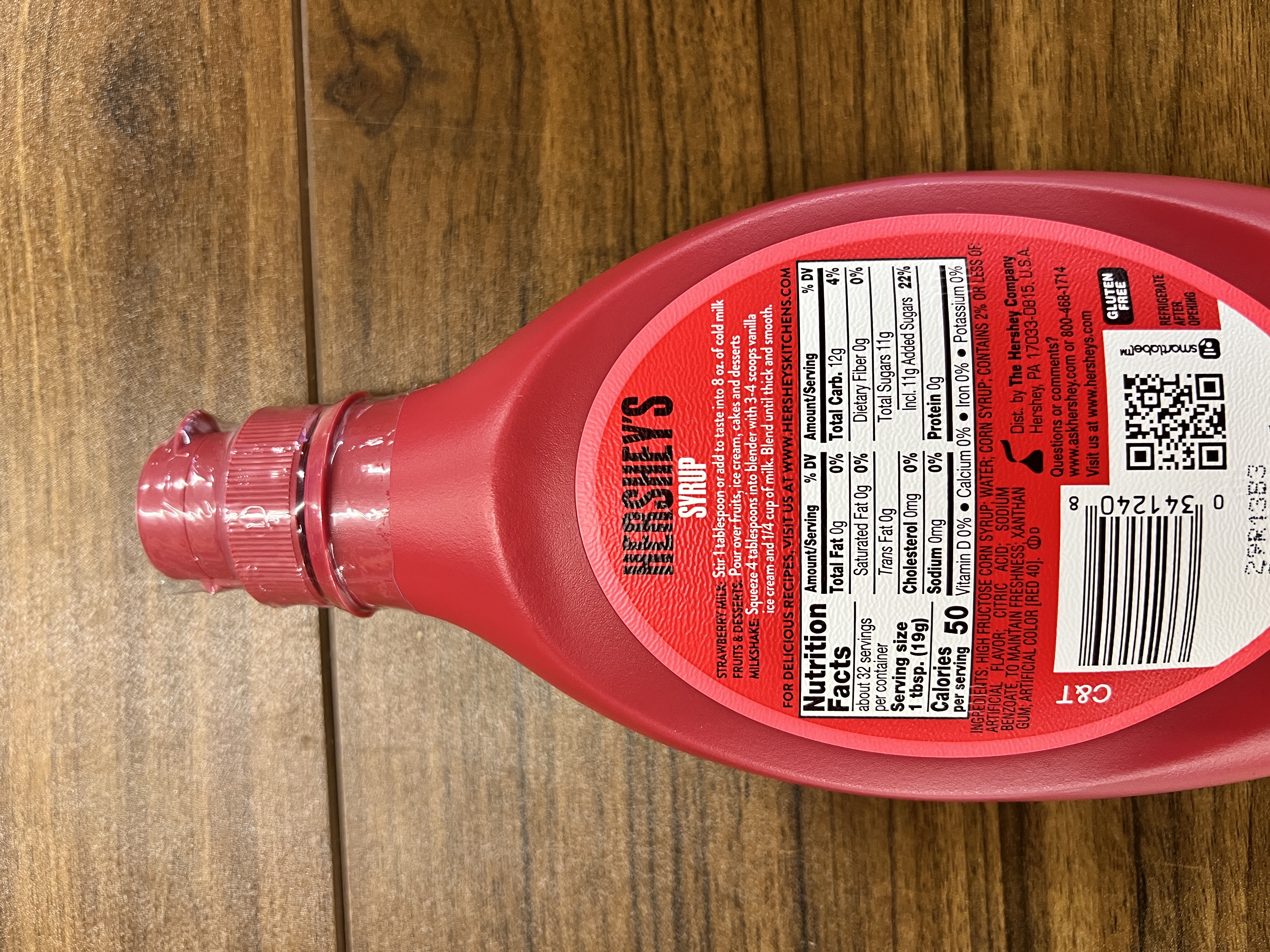 Contains one (1) 22-ounce bottle of HERSHEY'S Strawberry Flavored Syrup