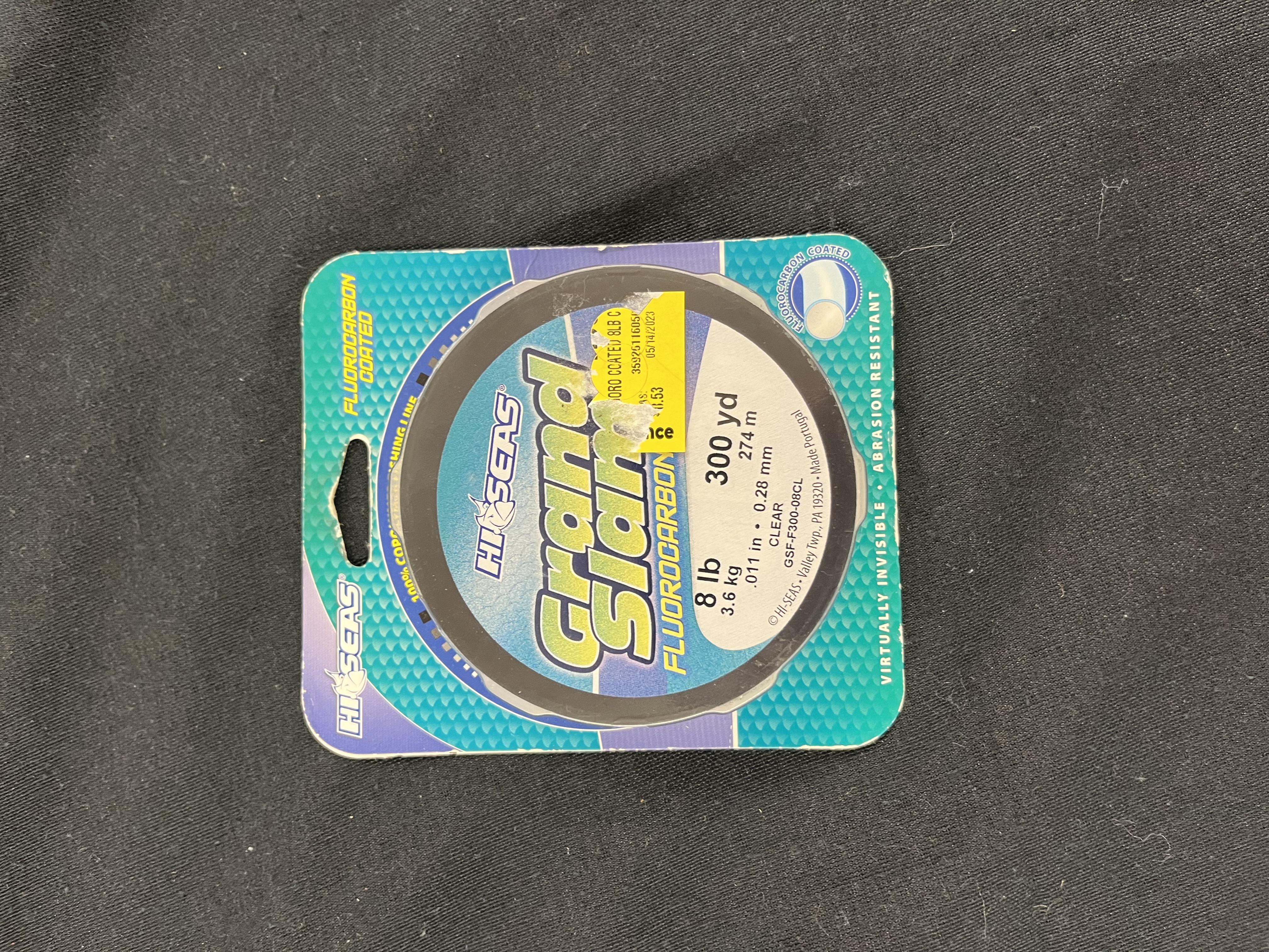 Hi-Seas Grand Slam Spool coated fishing line is an extra strong, 100 percent co-polymer with a fluorocarbon coating. The ultra-thin line is virtually invisible and can be used in any water conditions. It is a top choice when visibility is a concern, such as fishing in clear shallow water, deep water or in top water. Made from the highest quality co-polymer, the 300-yard Hi Seas fishing line is extremely supple and easy to cast. The durable line is ultra manageable and prevents unwanted knotting. It delivers high knot strength and abrasion resistance. Multiple weight classes are available for any type of fishing. The Grand Slam fishing line is ideal for fishing competitions or just for a relaxing day out with a pole.