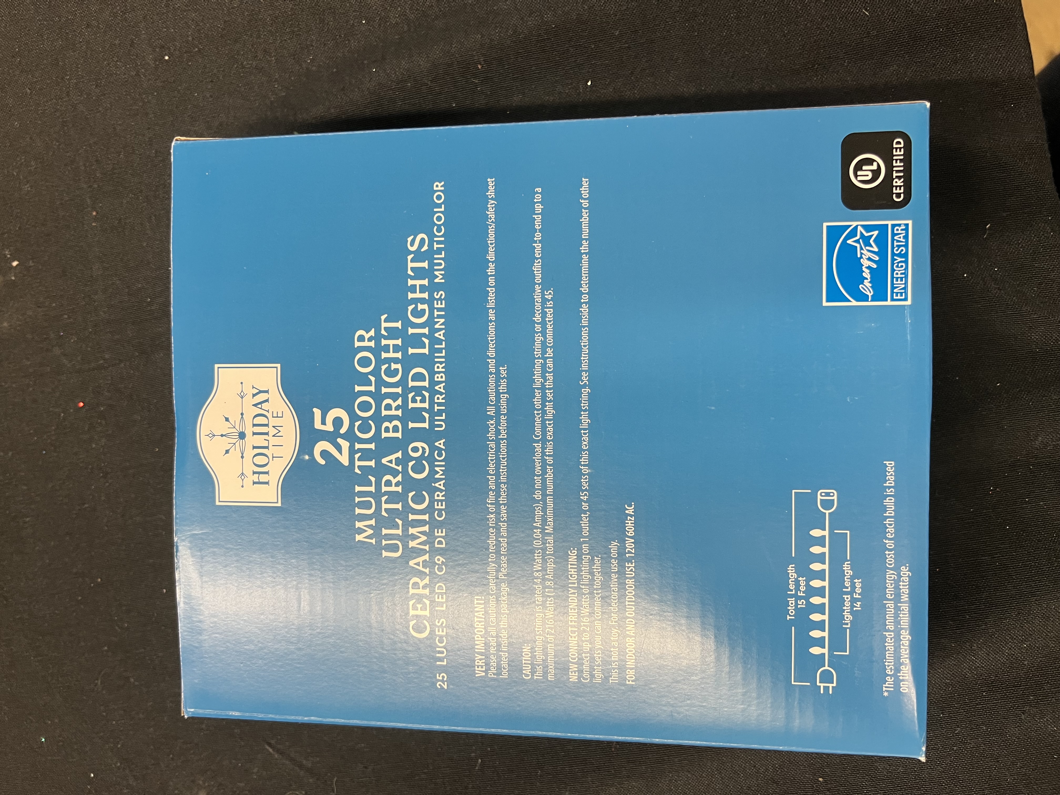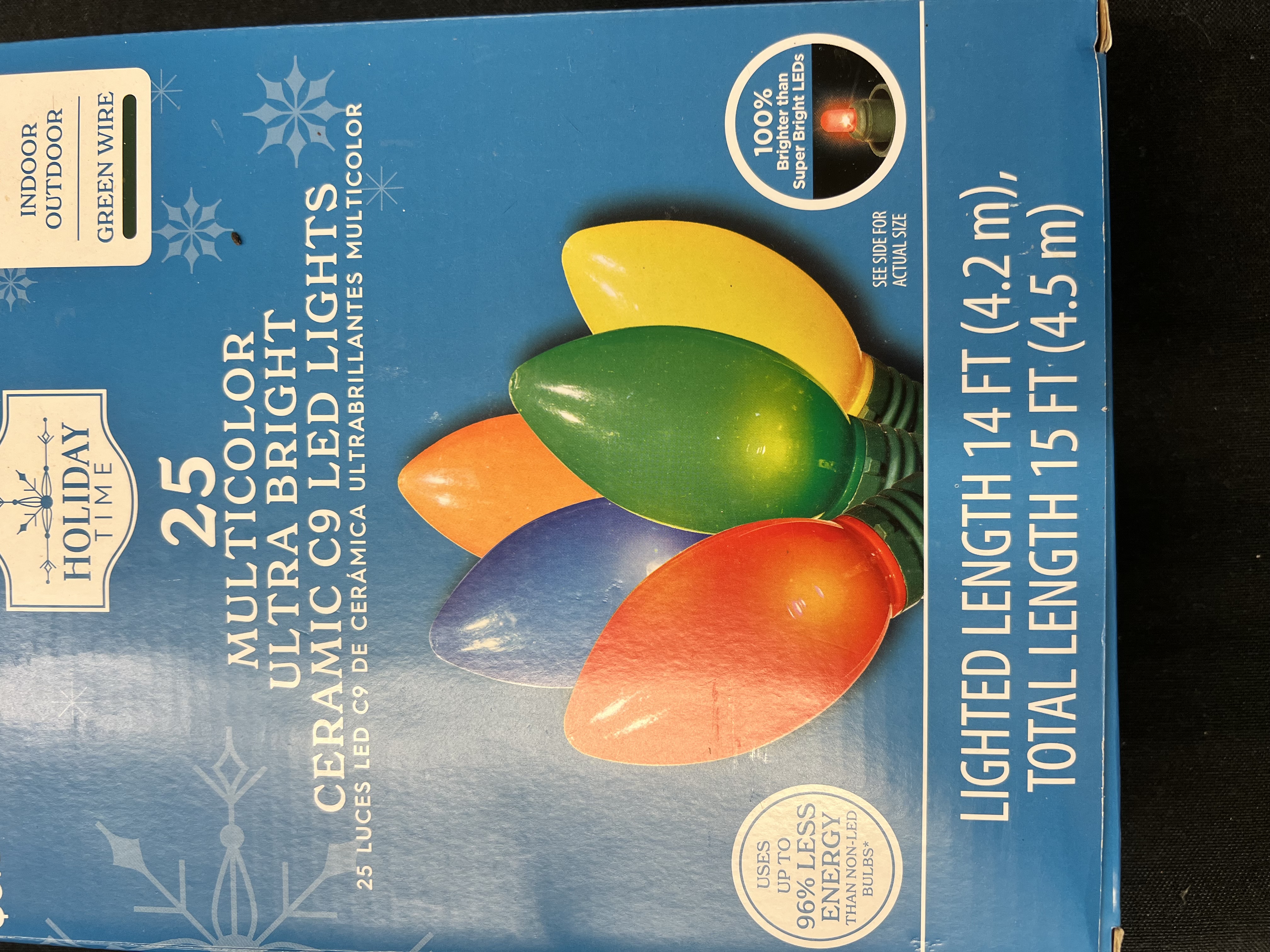 Holiday Time 15' Ultra Bright LED C9 Bulb Christmas Lights, Multicolor, 25 Count