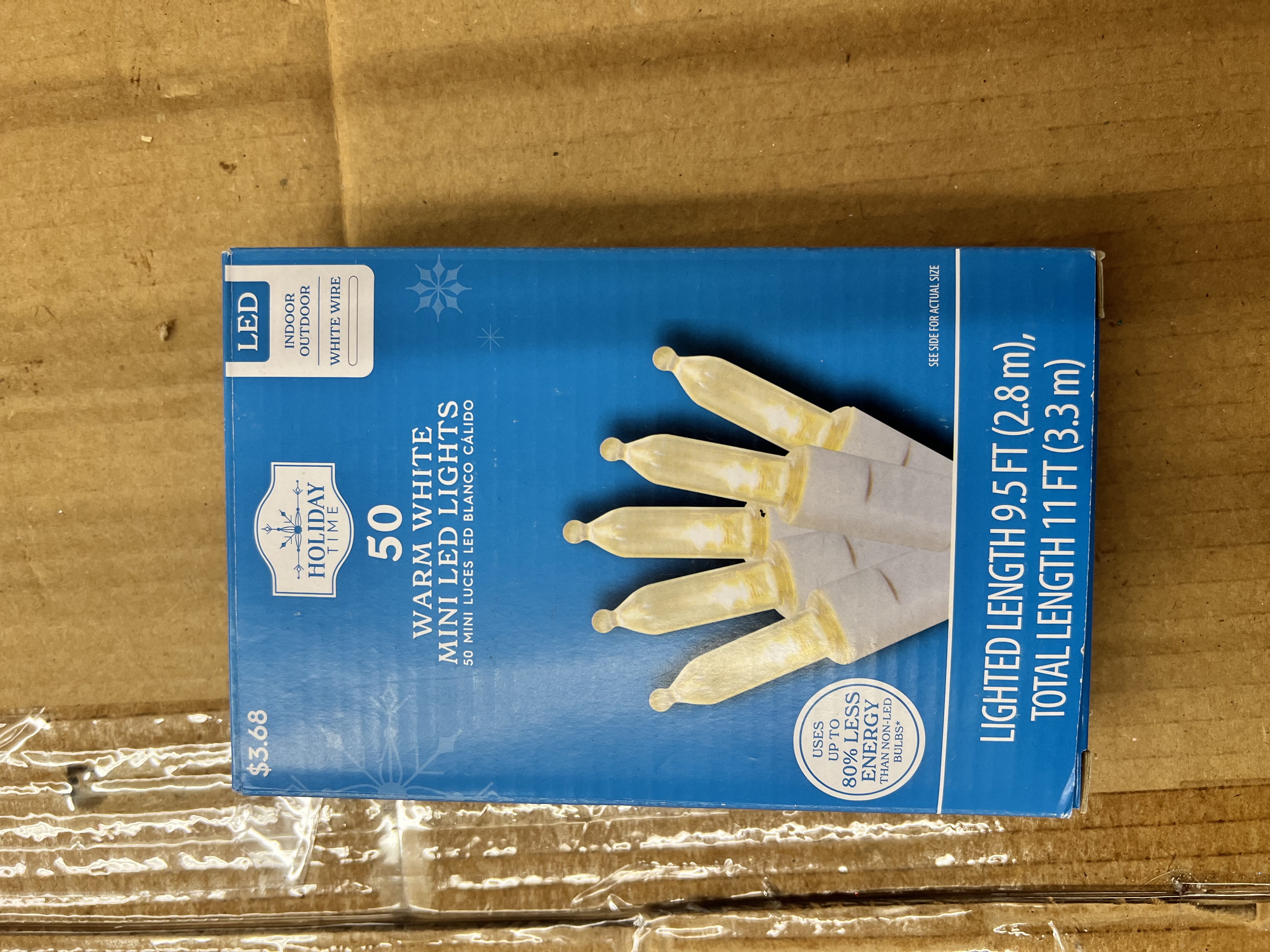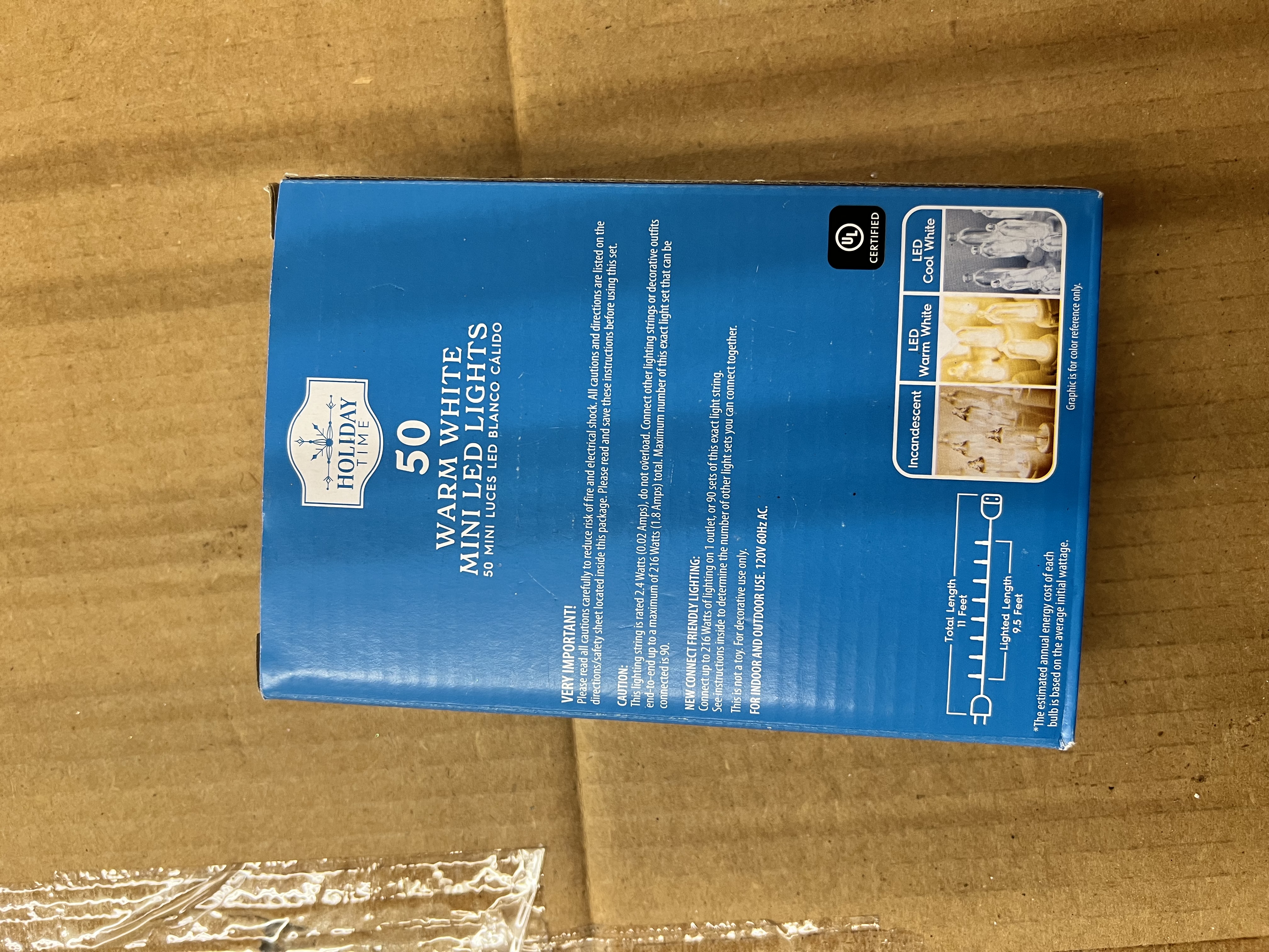 50-count LED mini lights Lighted length: 9.5 feet Total length: 11 feet Ideal for indoor and outdoor use Connect up to 90 sets of this exact same light White wire is less conspicuous against gutters and eaves Great for holiday parties and decorating