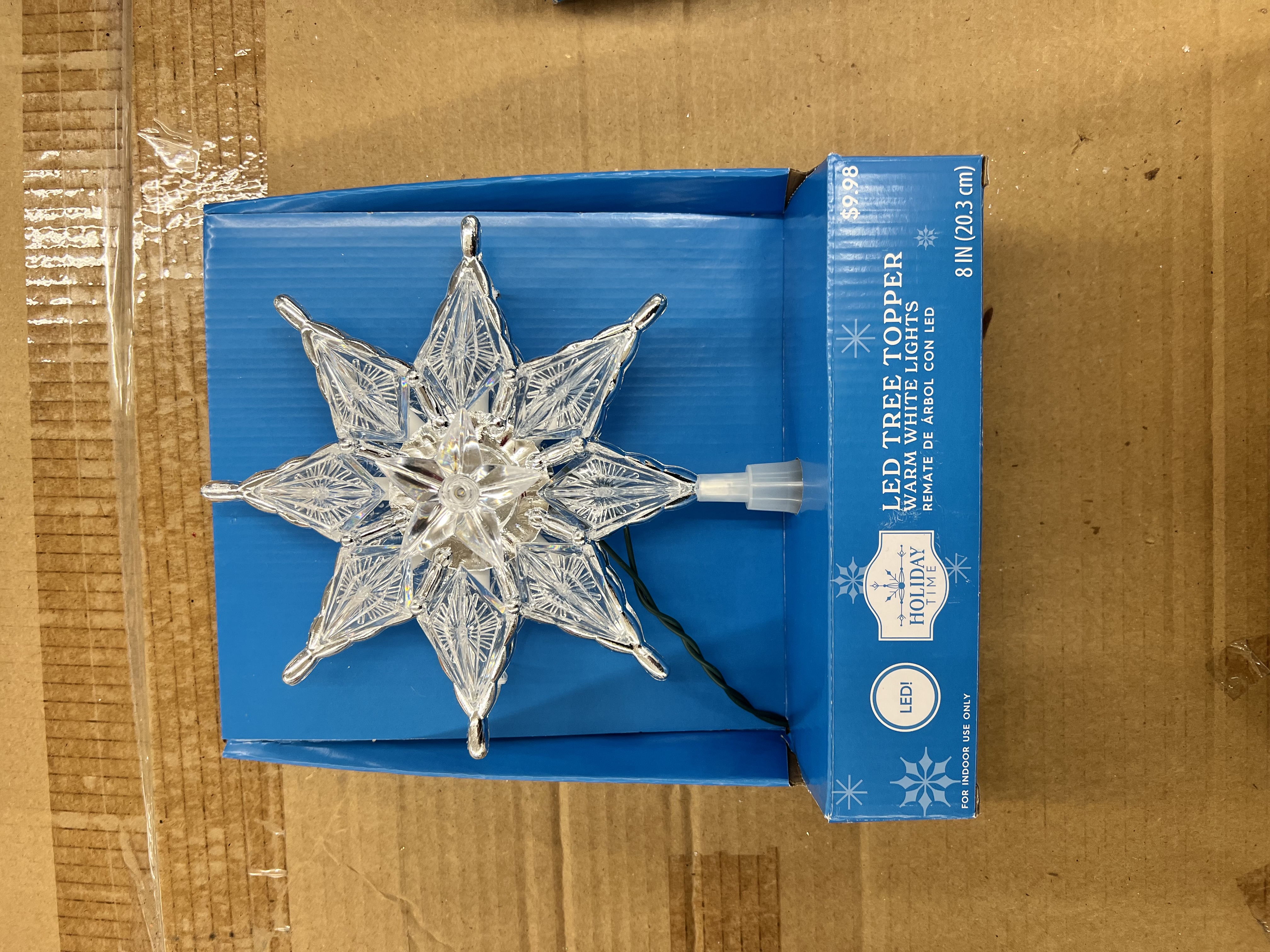 The Holiday Time 8-Inch Star Christmas Tree Topper is the perfect way to add a pop of color to your Christmas tree this holiday season. At 8-inches, this star tree topper features reflectors and 10 clear incandescent bulbs to shine brightly. This steady-burning tree topper is intended for indoor use only and comes with a 30-inch lead wire to easily connect with your other Christmas tree lights. This 8-Inch Christmas tree topper is available in two festive colors: gold trim with multicolor reflectors and silver trim with clear reflectors. The Holiday Time 8-Inch Star Christmas Tree Topper is sure to delight all season long.