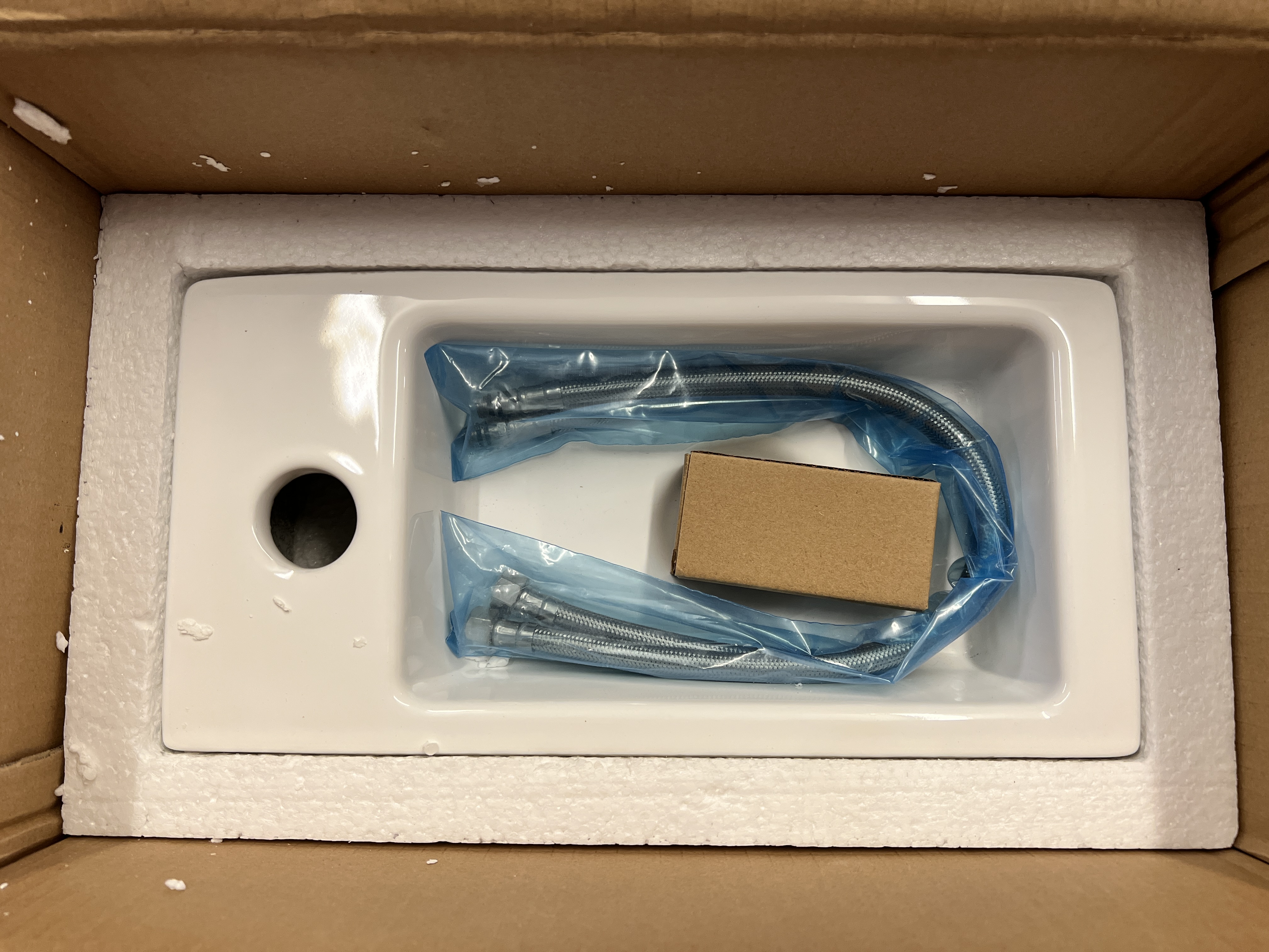 HOROW Small Vessel Sink with Pop Up Drain, 18" x10" Porcelain Ceramic Wall Mounted Bathroom Mini Sink for Tiny Bathroom (Left Hand) (Min Bid Amount: $2)
