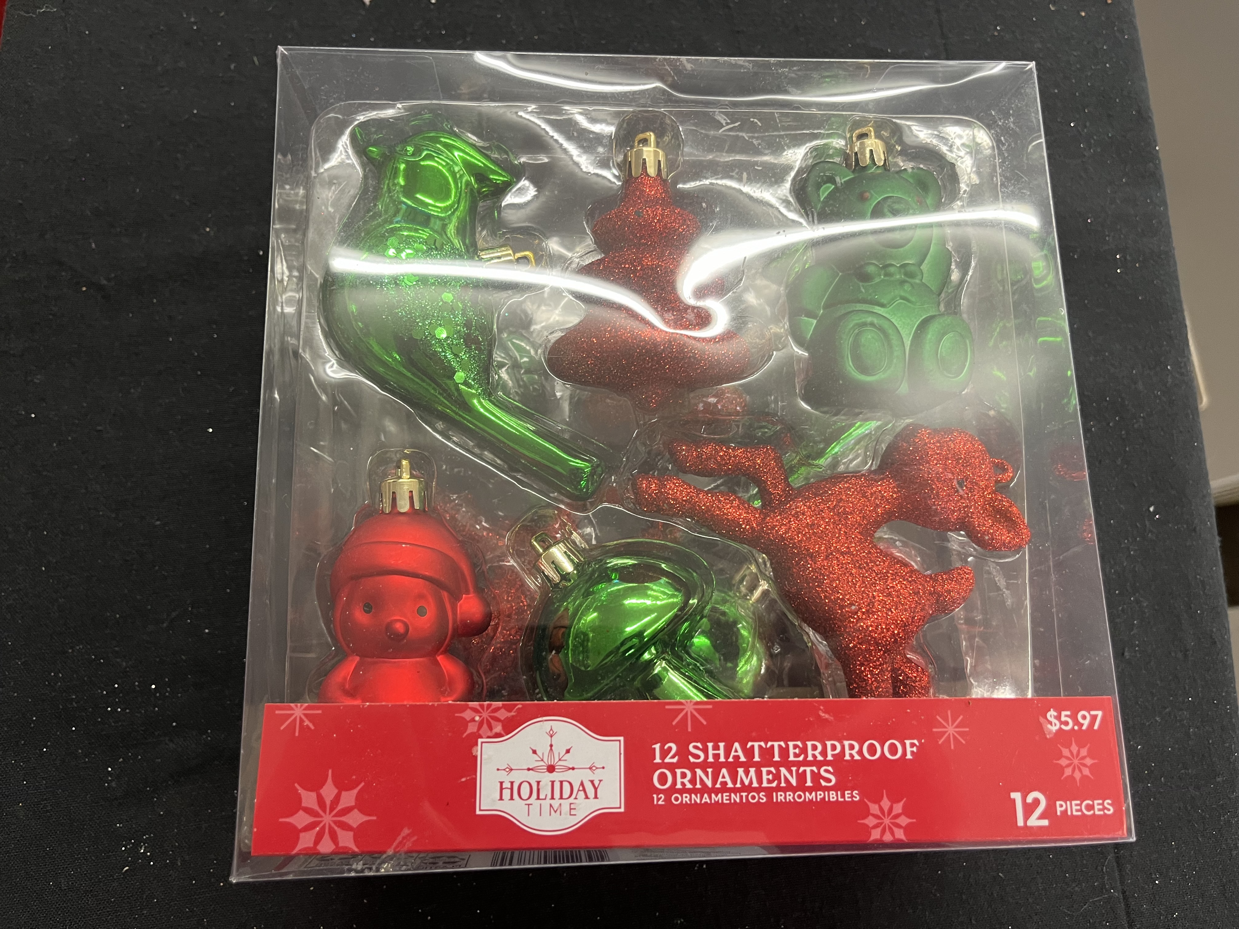 Add decorative flair to your Christmas tree with the Holiday Time 12-Count Icon-Shaped Shatterproof Christmas Ornaments. This set of ornaments will add sparkle and color to your Christmas tree in festive shades of the season. These icon-shaped Christmas ornaments are available in a variety of colors and shapes. Each set contains a mix of fun seasonal icons measuring three inches and four inches in height including the gold top. The ornaments are shatterproof to help make decorating safe and fun for the whole family and include a loop for easy hanging. Go all out this season when you decorate with the Holiday Time 12-Count Icon-Shaped Shatterproof Christmas Ornaments.