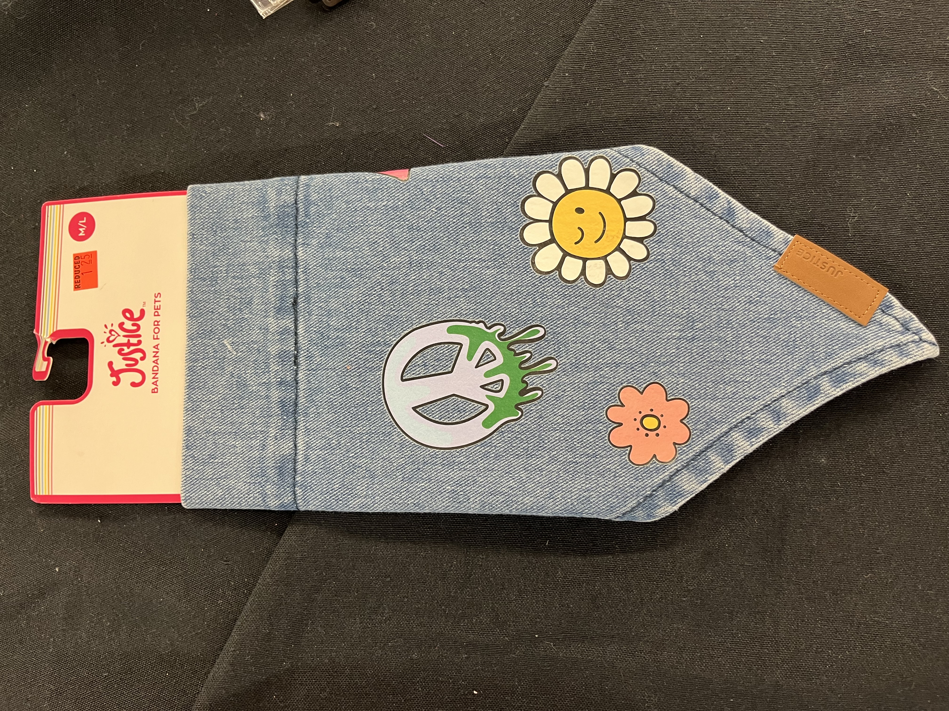 When you want your dog to match, but you just can't get any apparel on them, try out this fashionable Denim Pet Bandana. Available in multiple sizes to be sure to find the best fit. This garment is machine washable. Turn inside out and use mild soap and cold water. Lay flat to dry. Do not use bleach.