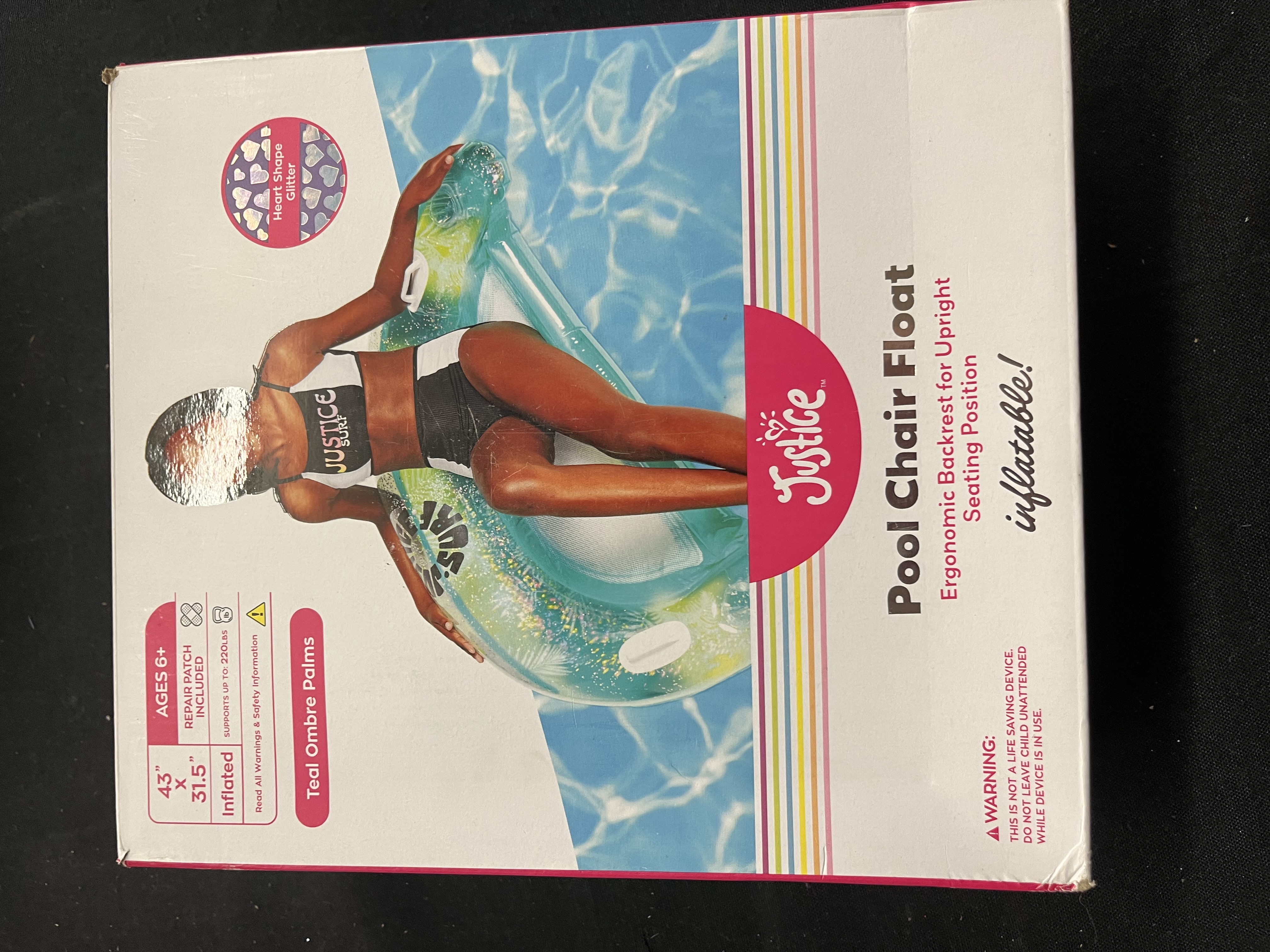 Justice Inflatable Chill-Out Pool Chair Float - Ergonomic Backrest for Upright Seating Position. inflatable lounge features a unique design with comfort so you can enjoy the water for hours. 2 convenient cup holders to keep your refreshments right by your side. Color: Teal, Ages Group: 6+, Unisex