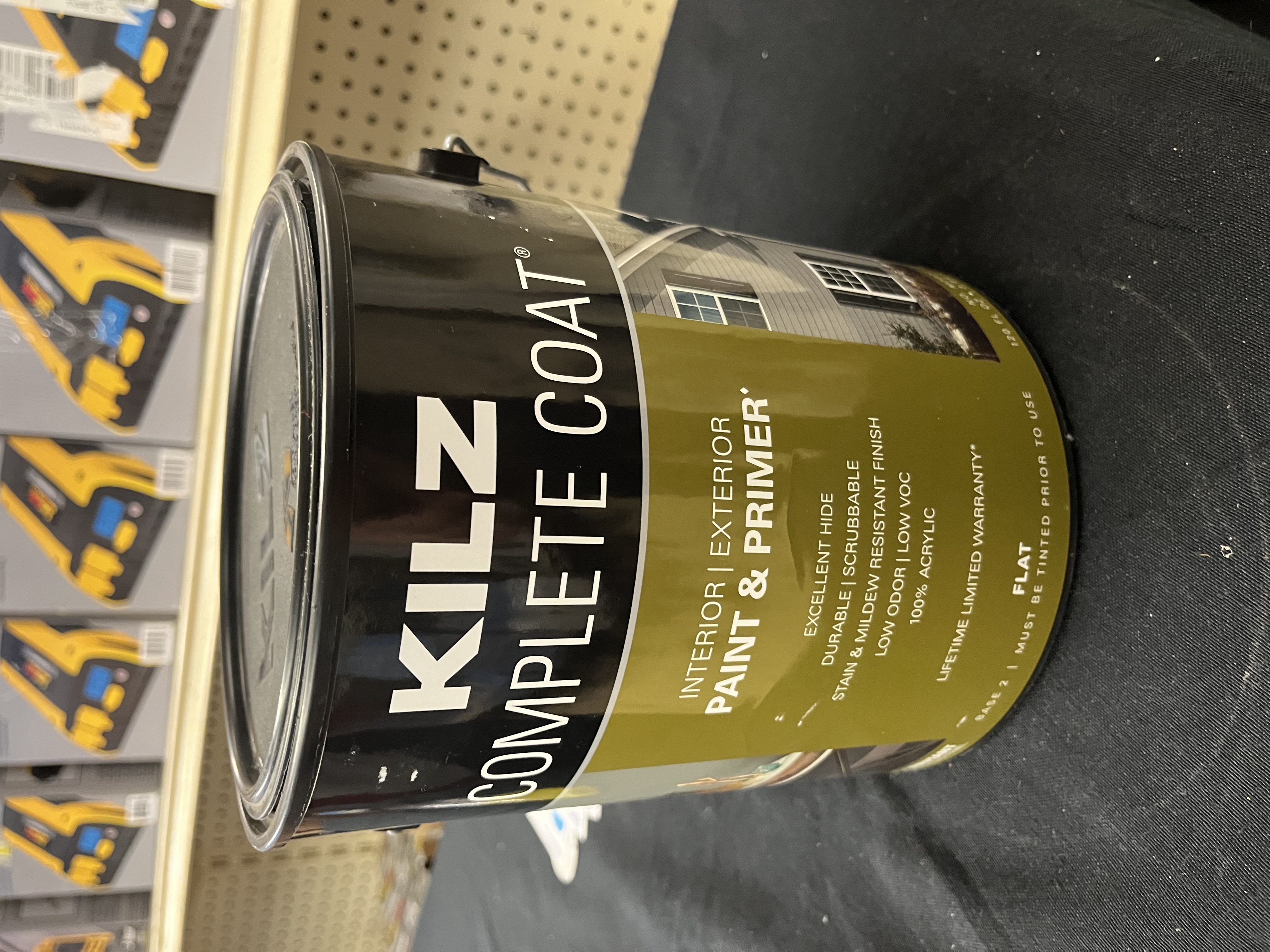 KILZ Complete Coat Interior/Exterior Flat Paint and Primer in One is a low VOC, low odour, premium water-based paint with excellent hide. It is highly scrubbable and easy to touch-up, resists staining, fading and peeling. It also offers a mildew-resistant finish. For use on interior walls and ceilings and exterior siding, shutters and fencing. Formulated for use on wood, drywall, masonry and stucco. Do not use on floors.