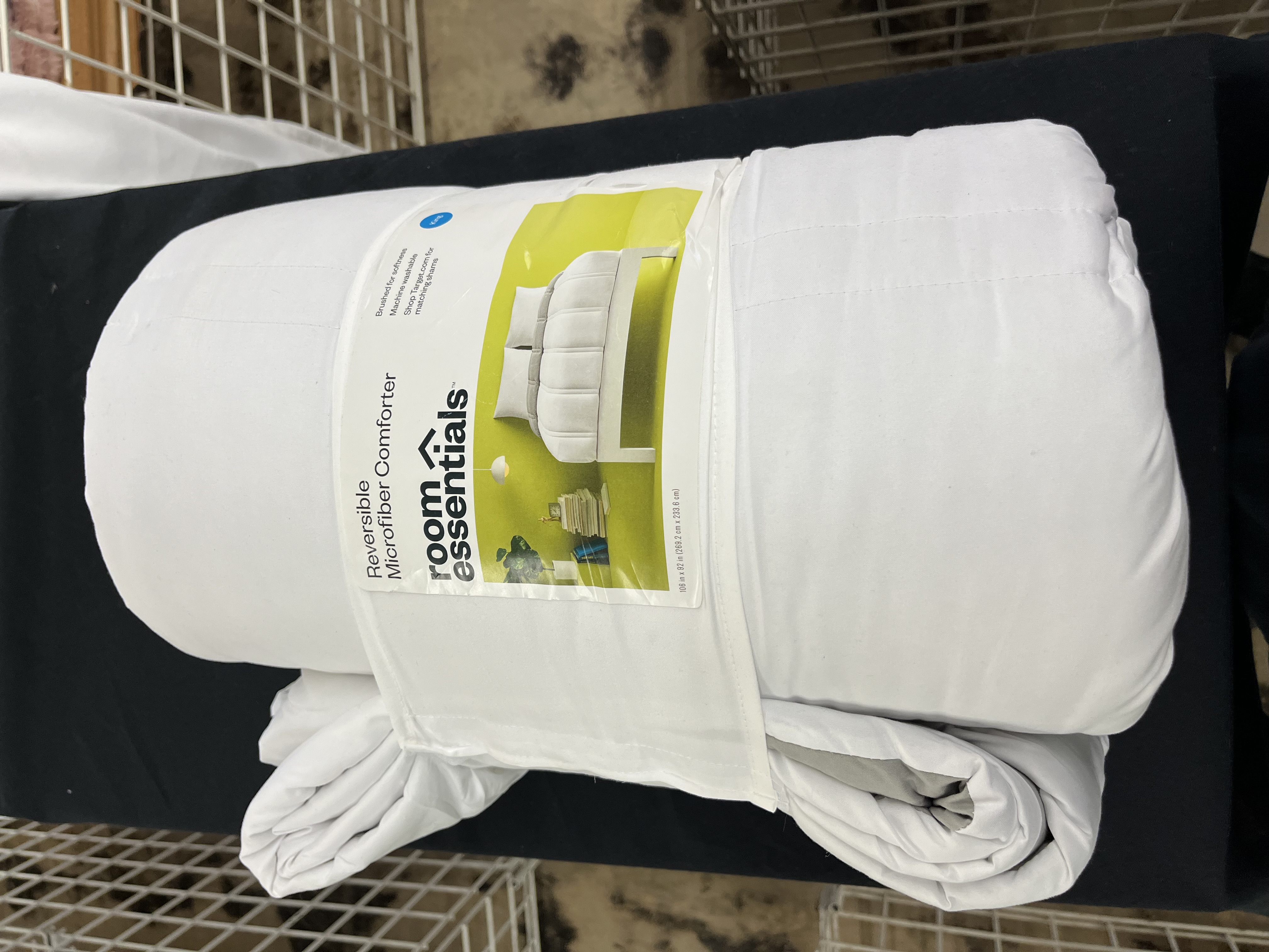 This Lofty Microfiber Comforter from Room Essentials™ in a solid hue is easy to pair with any bedding and bedroom decor. It features a microfiber construction with soft filling to offer year-round comfortable use, and it's machine washable for easy cleaning. Pair with matching pillow shams and sheets to complete your coordinated bedspread. • Lofty comforter in solid hue • Microfiber construction with soft fill • Year-round use • Machine wash and tumble dry • Recycled Polyester Shell (Polyester Fill) • STANDARD 100 by OEKO-TEX® certified