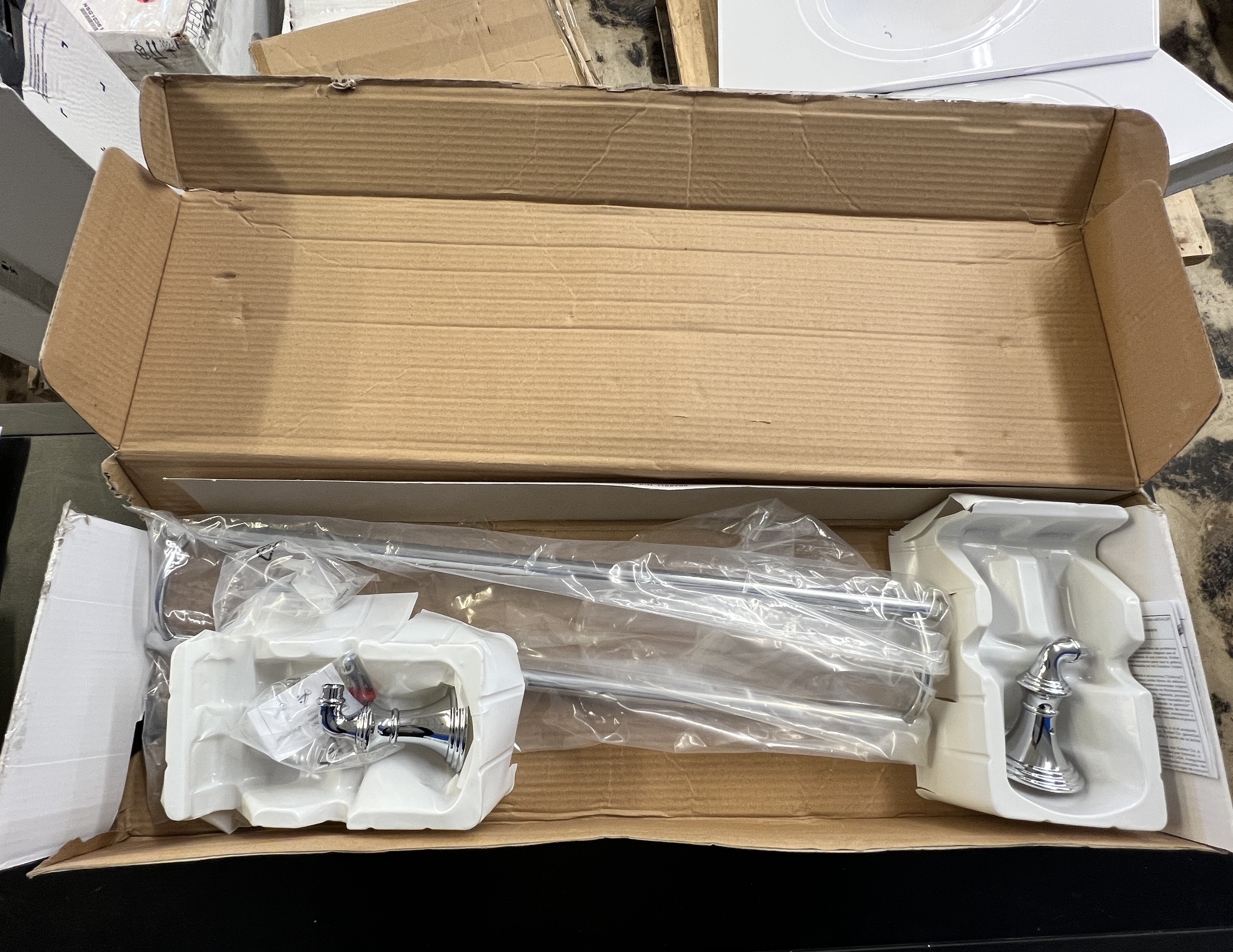 Product Features: Double rail towel bar Constructed of metal, ensuring durability and dependability Covered under Kohler's 1 year limited warranty Kohler finishes resist corrosion and tarnishing, exceeding industry standards for durability Installs in a wall mounted configuration Coordinates seamlessly with the Devonshire Collection Width: 24" Overall Width: 26-3/8" Projection (Depth): 3-3/4" Height: 2-3/8" Secure mounting assembly All hardware needed for installation is included