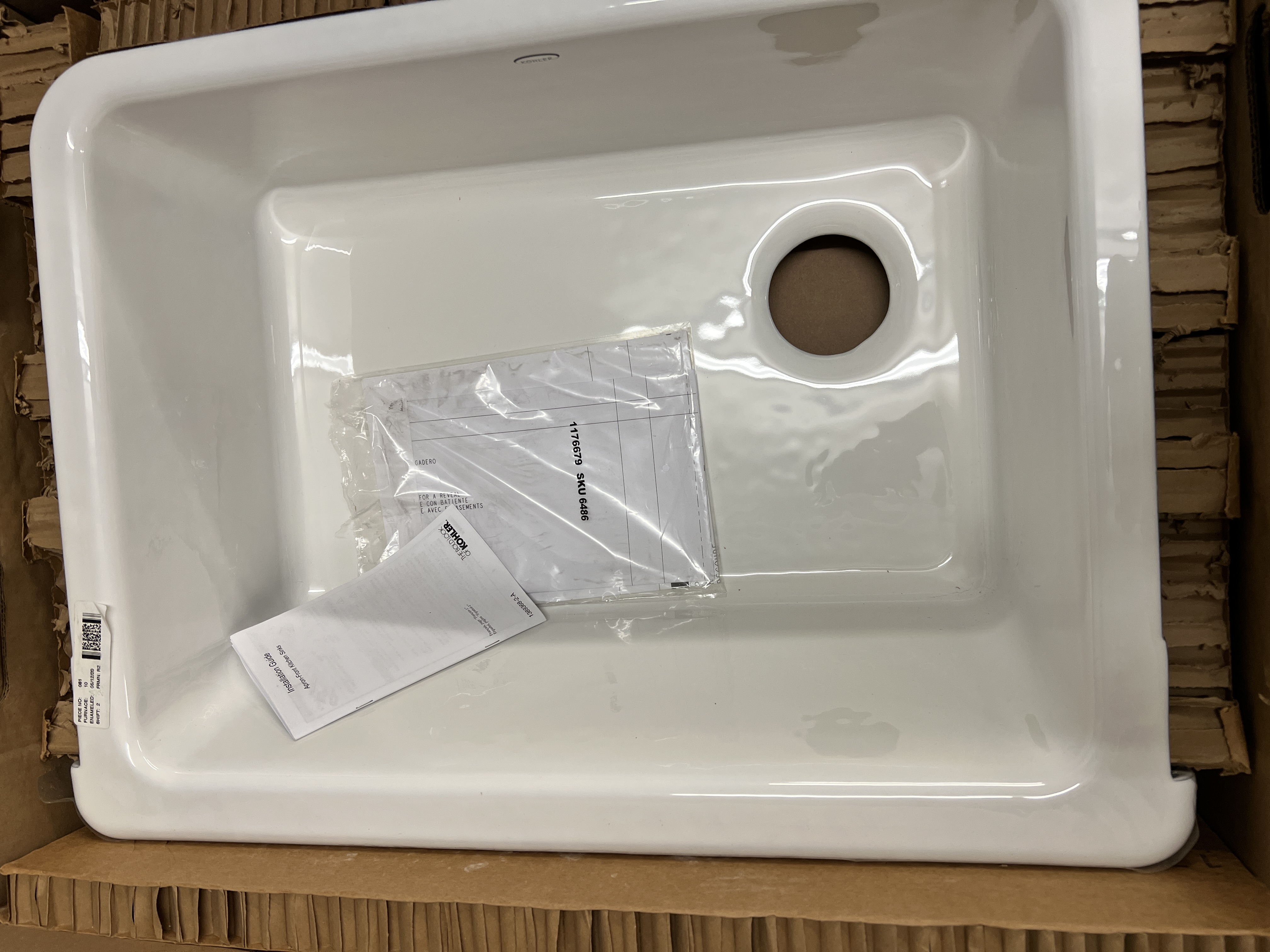 The Whitehaven apron-front kitchen sink features a streamlined and versatile farmhouse style. Perfect for remodeling projects, the Self-Trimming design requires only a rough cut to new or existing 30-inch standard cabinetry for simple installation and beautiful results. A large single basin accommodates large pots and pans, while the sloped bottom helps with draining and cleanup. Crafted from enameled cast iron, this sink resists chipping, cracking, or burning for years of beauty and reliable performance.