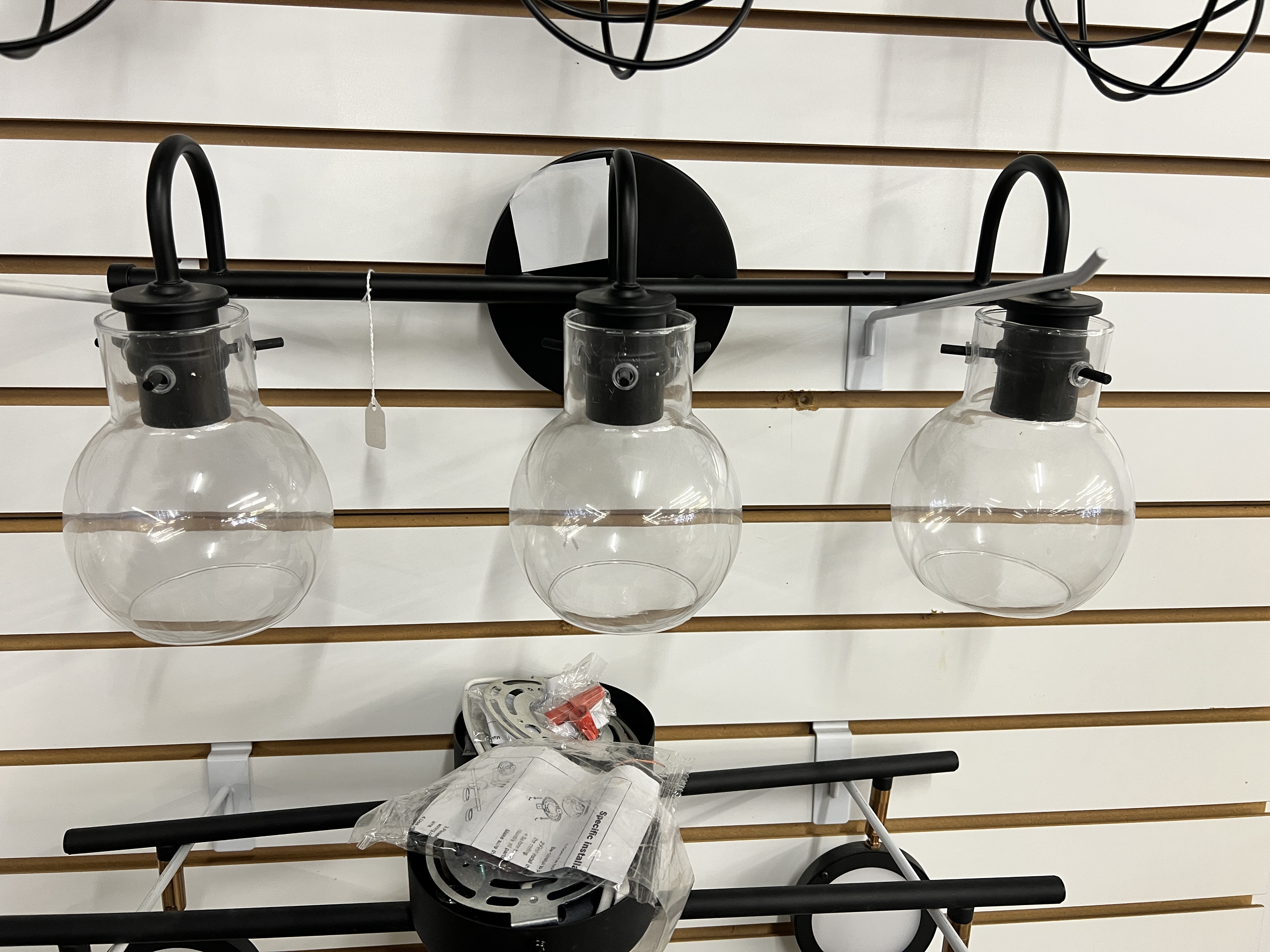 Modern Farmhouse Elegance: This 3-light vanity light combines a sleek matte black finish with globe-shaped clear glass shades, offering a refined yet rustic charm. Its perfect blend of modern and farmhouse elements makes it a versatile choice for any space