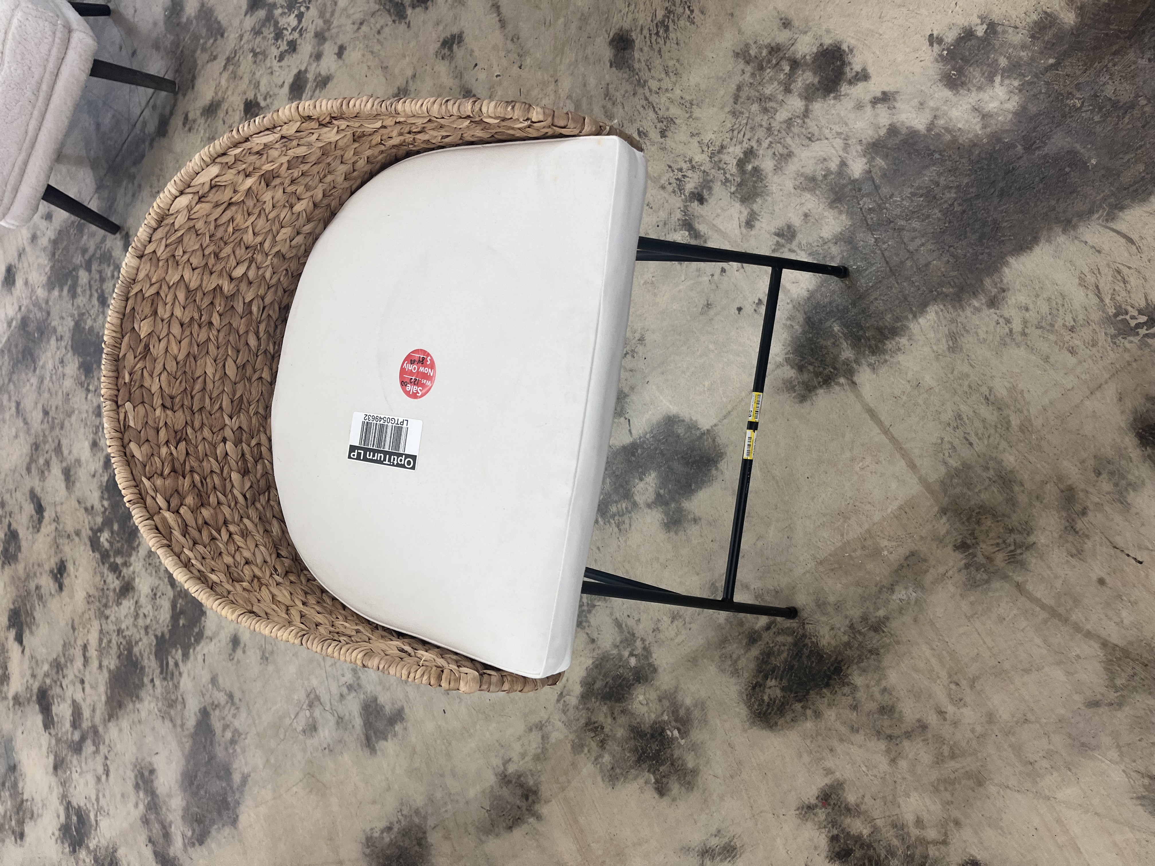 Bring a rustic, industrial theme to any room with the Landis Woven-Backed Counter-Height Bar Stool with Cushion from Threshold™. This counter-height stool features a black metal frame, topped off with a jute-like woven seat featuring tub-style silhouette and a white cushion seat to deliver both comfort and contrast. The bar stool is supported on tubular and slanted legs accompanied by sleek foot rails at the bottom for better stability and balance. This woven stool can be used at an array of surface heights, giving it a marvelous multi-purpose quality. Keep it around the kitchen island, add a comfy space-saving seat in your family room or create a cozy nook by the window to have your coffee while taking in the outdoor view.