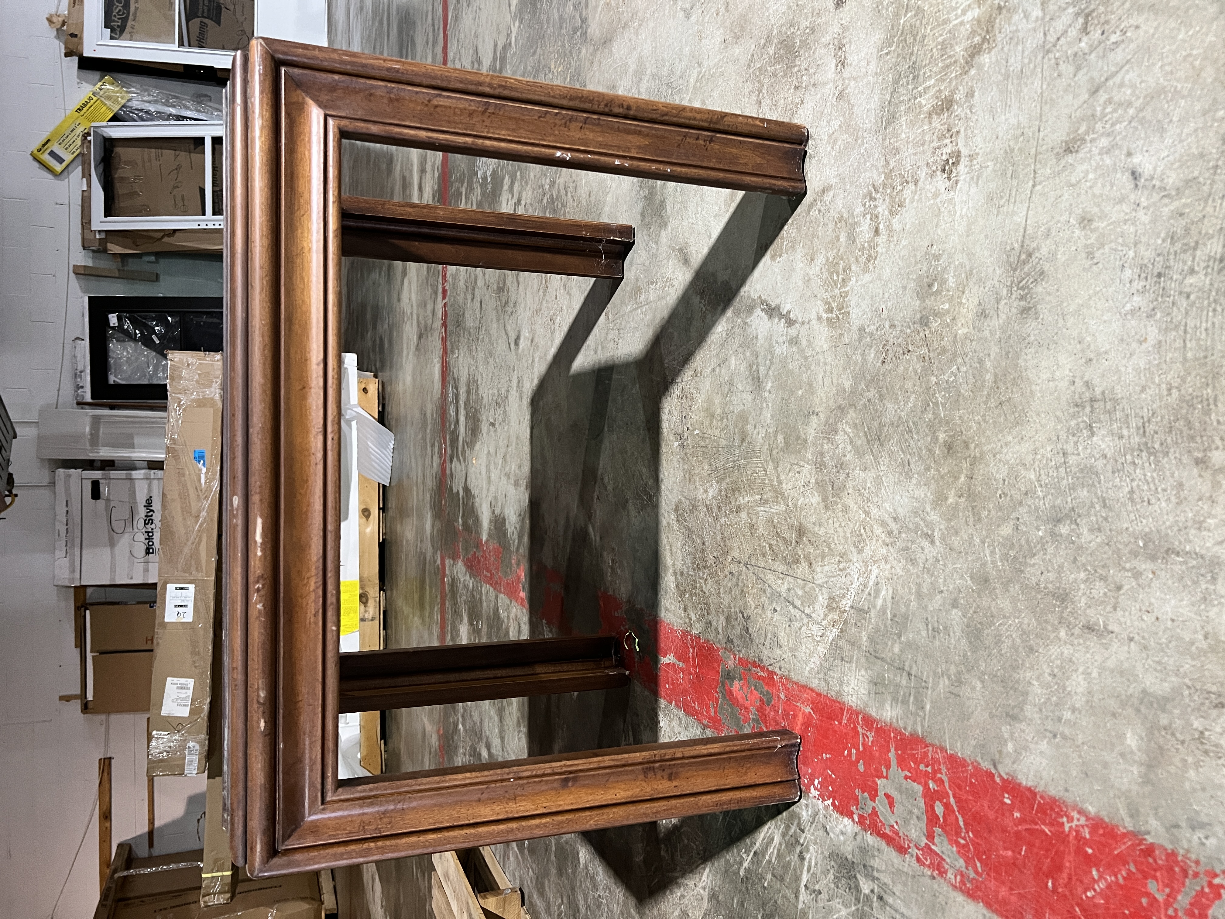 Vintage Lane Altavista Oak MCM dining table. Features a square parson styles form with parquetry top, natural distressing and glass top. Made on 01-27-78 in plant number 4.