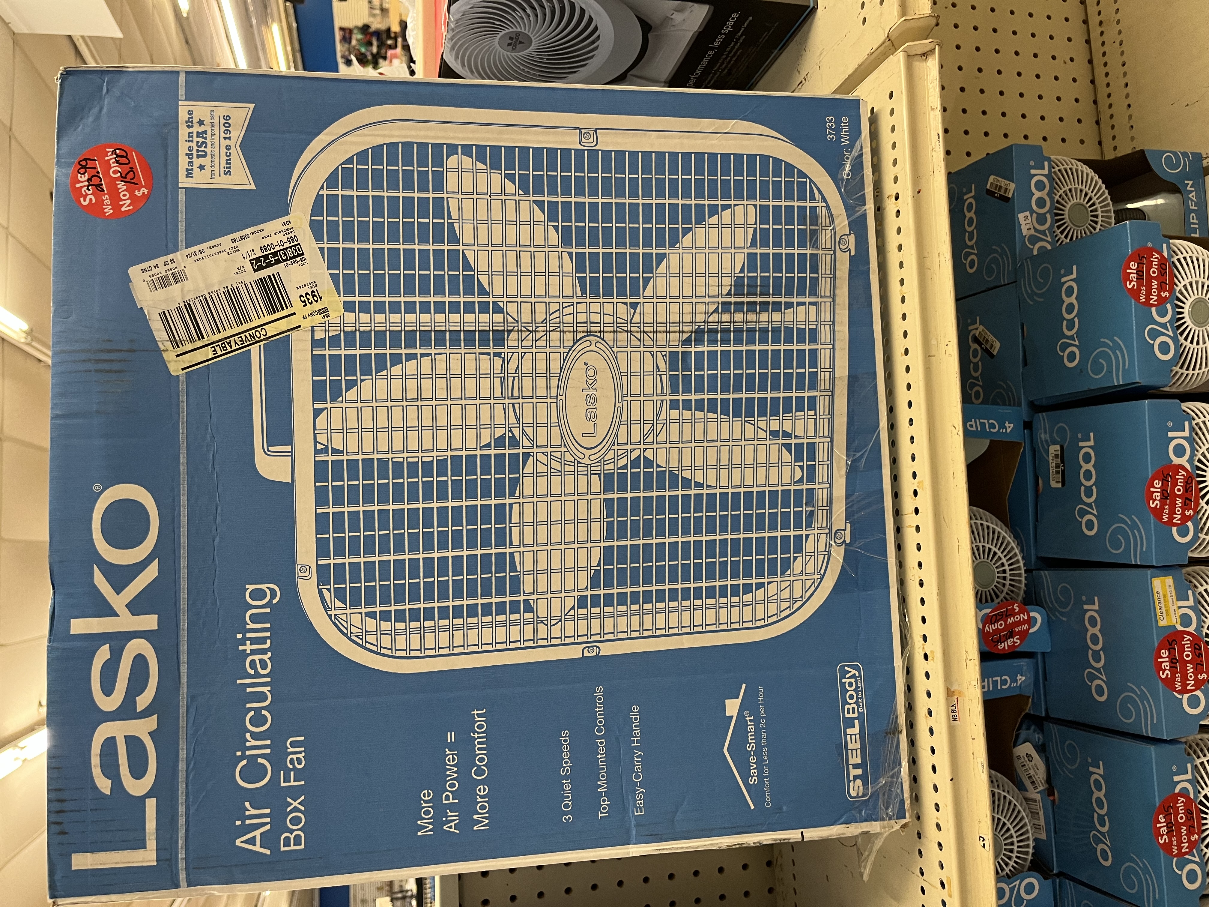 The Lasko 3733 Slim 20" Air Circulating Box Fan is an excellent choice for any indoor space that needs increased airflow. This powerful box fan features 3 powerful speeds for high volume air movement. The rounded corners offer safety while the slim design allows for easy placement no matter where you put it. Put it in a window, on the floor in a bedroom, living room, office or anywhere you need a fan. Use in conjunction with an air conditioner to boost cooling airflow. Plus, with the Save-Smart design, this fan costs less than 2-cents per hour to run! This fan is ideal for bedrooms, living rooms, garages, or anywhere you need some additional airflow. Equipped with Lasko's trusted, fused safety plug. Simple no-tools assembly required. Comes with a 1-year limited warranty.