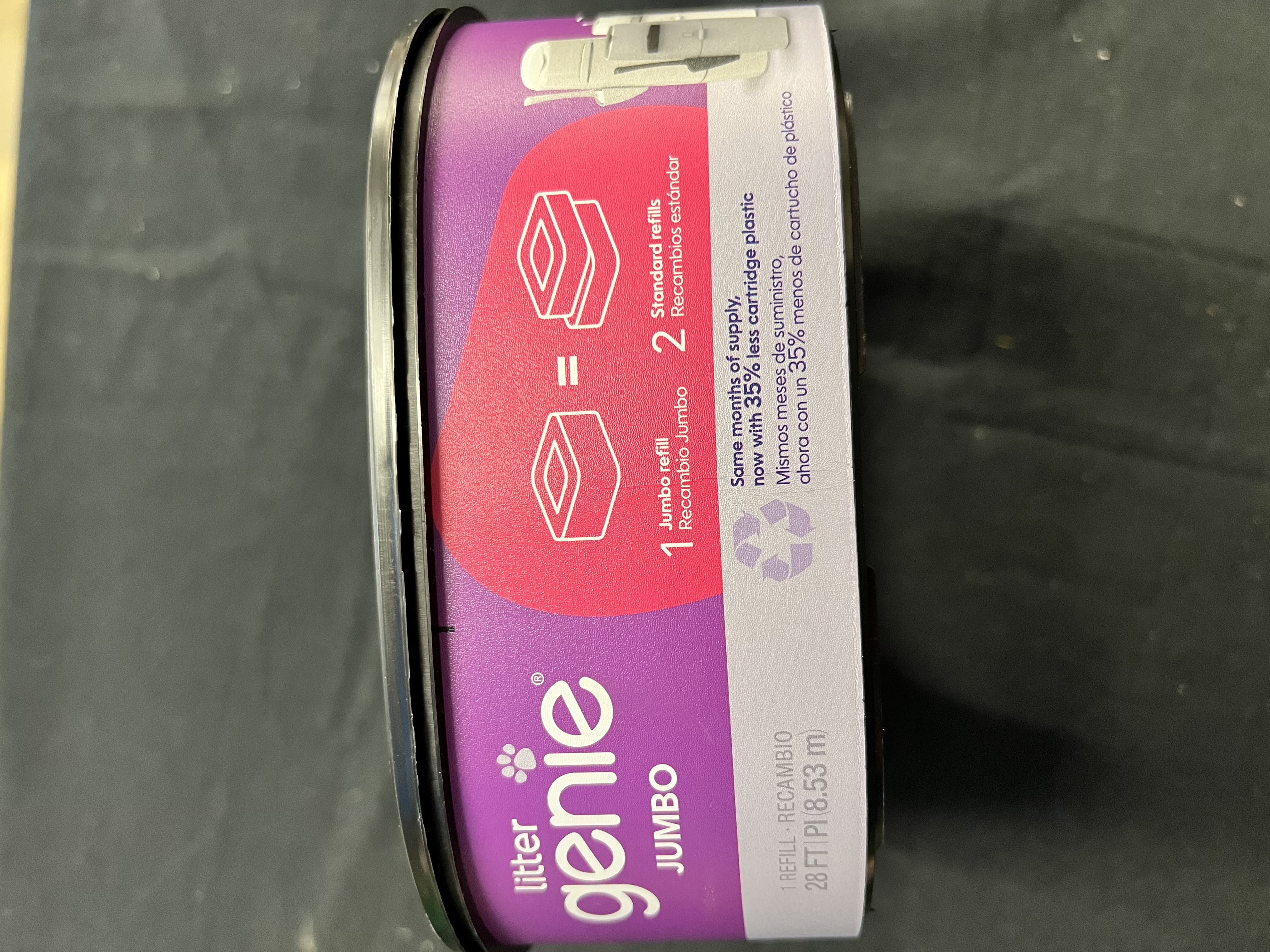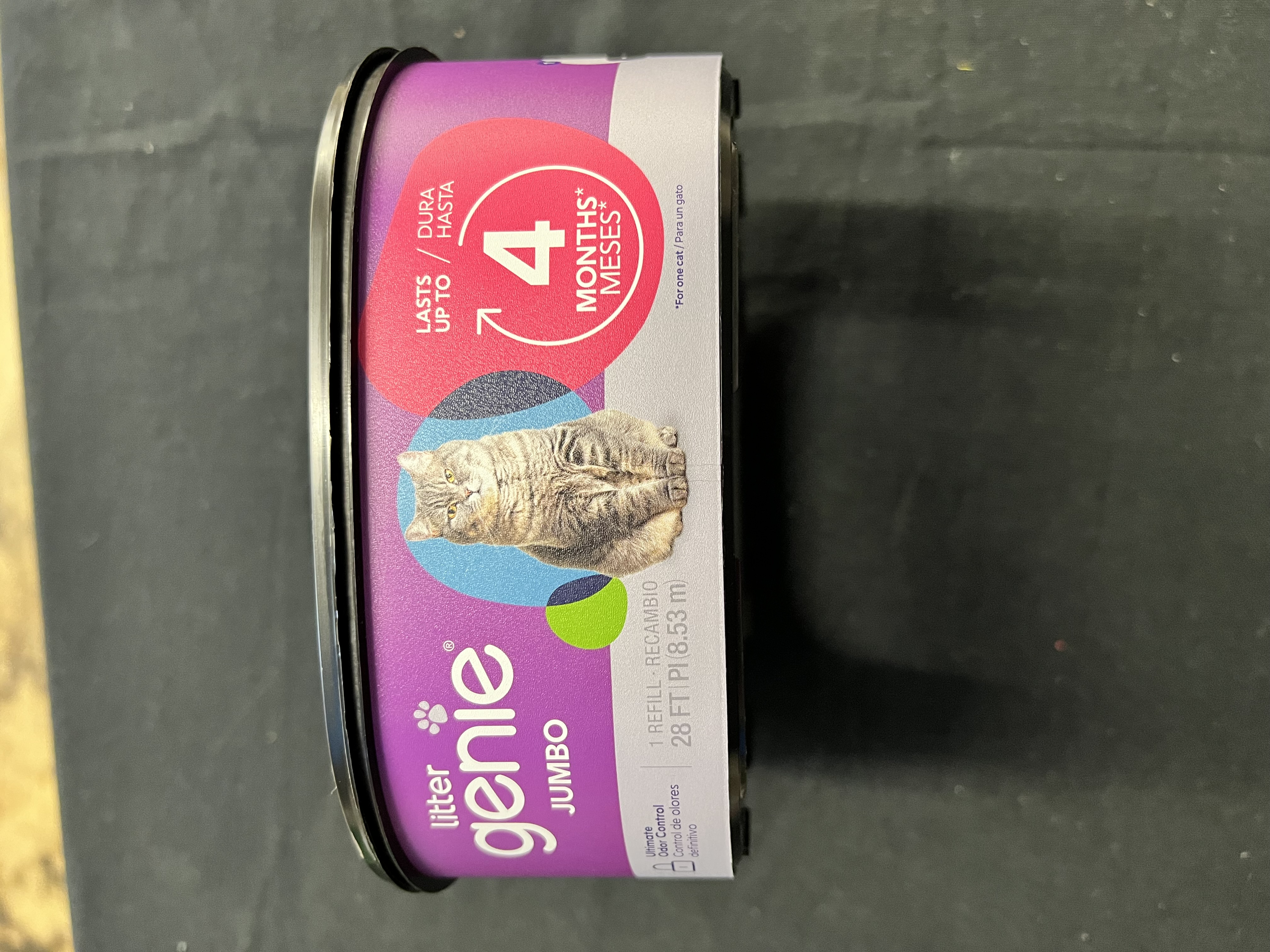 The Litter Genie Jumbo Refill 1 pack offers 28 feet of film & can last up to 4 months for one cat, so you won’t have to worry about buying and changing refills. Made with a multi-layer refill that blocks odors and keeps your home fresh and clean. Cleaning your cat litter has never been so fast and easy. Ultimate odor control - The pail comes with a multi-layer refill bag with odor-locking barrier technology that prevents odor from escaping Easy to use - Refills are easy to insert, easy to dispose of. Flexible - Square refill contains continuous film, allowing you to cut and tie it to any length Long-lasting - One refill lasts up to 4 months for one cat. Compatible With: Standard Pail, Plus Pail
