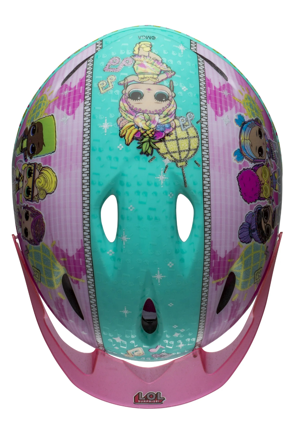 Get ready to groove with this stylish L.O.L. Surprise! helmet. The bright, colorful L.O.L. Surprise! doll graphics and matching pink visor make this helmet glitterally amazing! Recommended for ages 5+, but will fit most heads measuring 52-56 cm. IMPORTANT: Always take a head measurement. Head sizes and shapes vary, even within an age range. Using a helmet that does not fit can be dangerous. Complies with the US CPSC Safety Standard for Bicycle Helmets for Persons Age 5 and Older. • Recommended for ages 5+, but will fit most heads measuring 52-56 cm. IMPORTANT: Always take a head measurement. Head sizes and shapes vary, even within an age range. Using a helmet that does not fit can be dangerous. • Features True Fit system for easy one-step adjustment every time you ride • The patented PinchGuard buckles ensures pinch-free buckling • Complies with the US CPSC Safety Standard for Bicycle Helmets for Persons Age 5 and Older