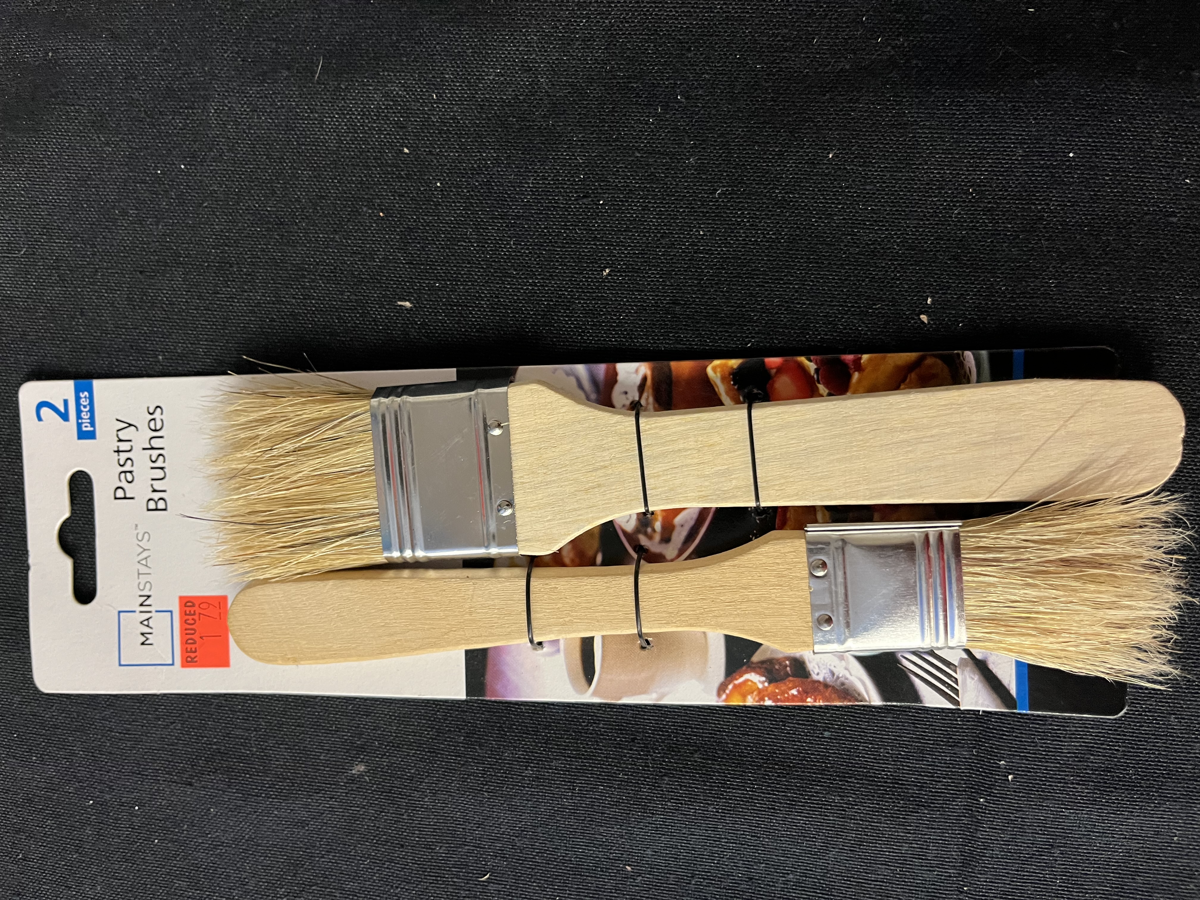 Complete your collection of everyday baking tools with the Mainstays Pastry brown Brush Set. Designed with home bakers in mind, this set includes a 1" wide pastry brush and 1.5" wide pastry brush so you'll always have the right size for your basting needs. With supple, flexible natural bristles and comfortable wooden handles, these basting brushes are ideal for removing excess flour from cookie dough, giving a pastry crust an egg white bath, applying cream or milk to biscuits, or even giving those ribs a healthy slathering of barbecue sauce. For the best long-lasting results, it is recommended that the bristles are hand washed after each use and the brushes are kept separate for their designated uses. Build your kitchen from the ground up with all the cookware, bakeware, tools, dinnerware and other items you need to create a useful cooking and dining arrangement. The Mainstays kitchen collection focuses on colorful and decorative design applied to simple basics, keeping your daily life vibrant and efficient.