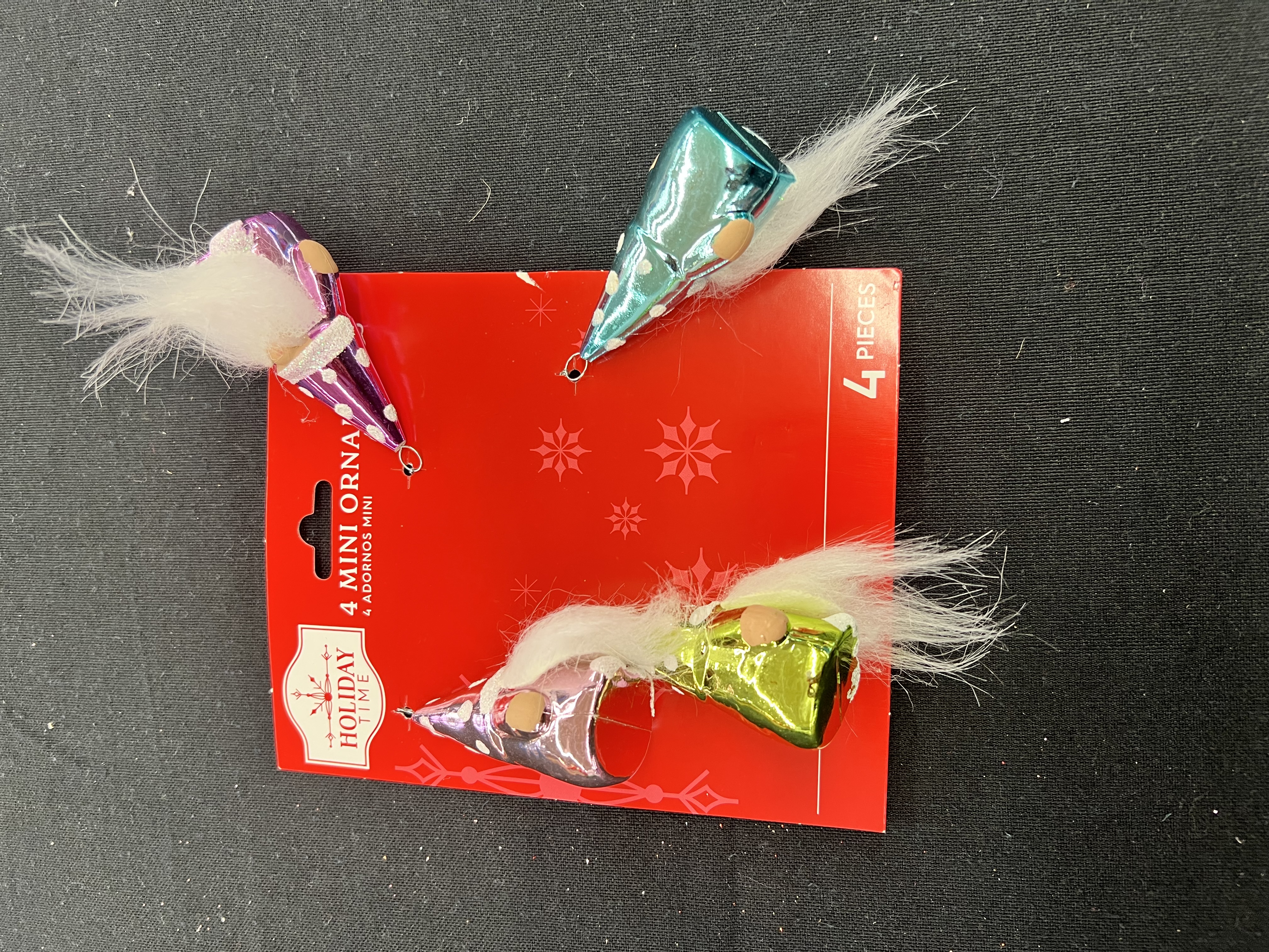 Holiday Time Mini Multi-Color Gnome Christmas Ornaments, 0.097 lb, 4 Count Features four gnomes each wearing a different colored hat Add them to a tree or wreath for a colorful addition Sure to add cheer to any room they're in Coordinates perfectly with other Holiday Time decorations