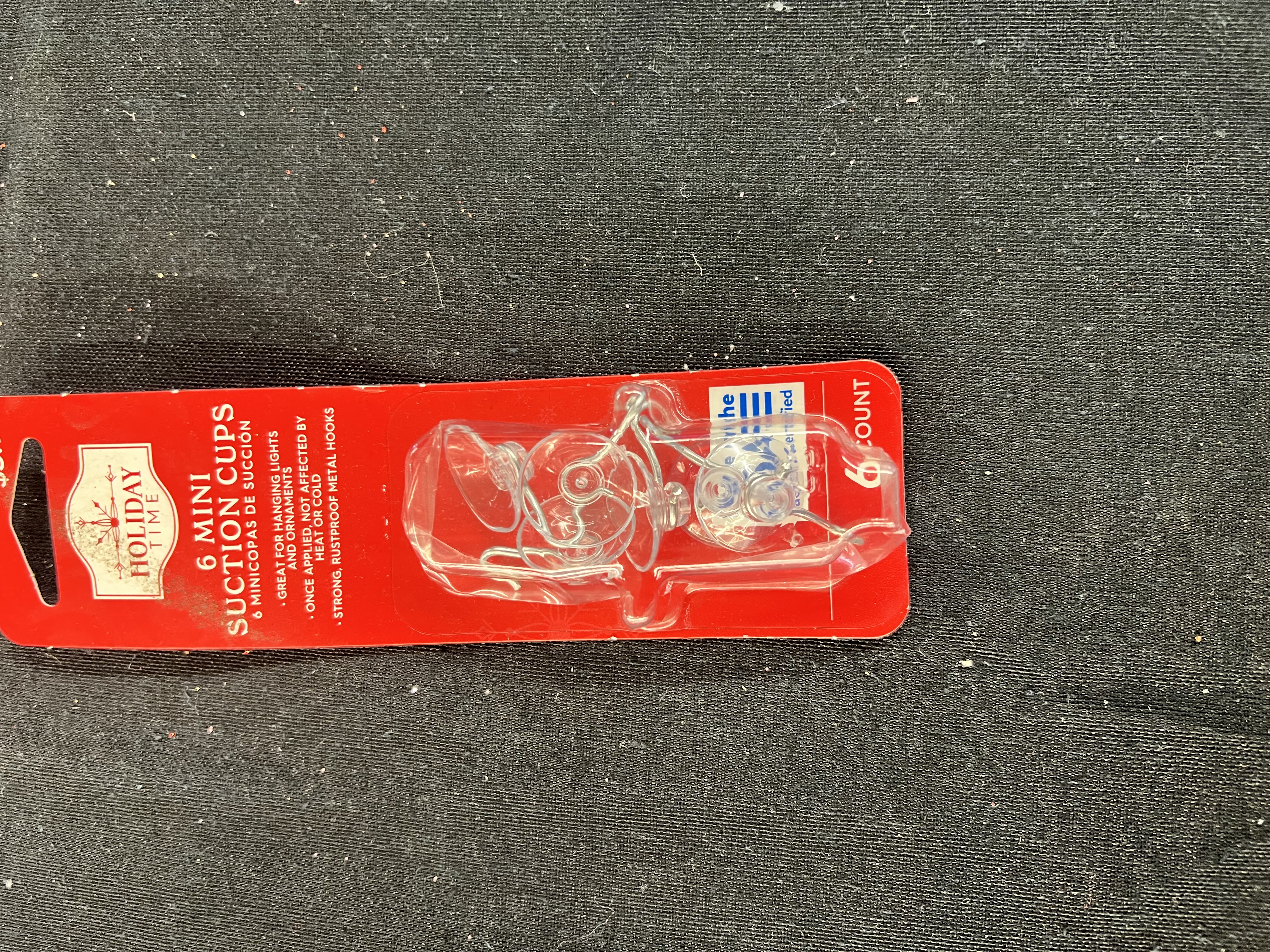 Holiday Time Mini Suction Cups with Hook, 6 Count Great for hanging lights, decorations, and ornaments Once applied, not affected by heat or cold Strong, rustproof steel hooks Design diffuses light to prevent surface damage Will not yellow or deteriorate Rated to hold 1/2 lbs