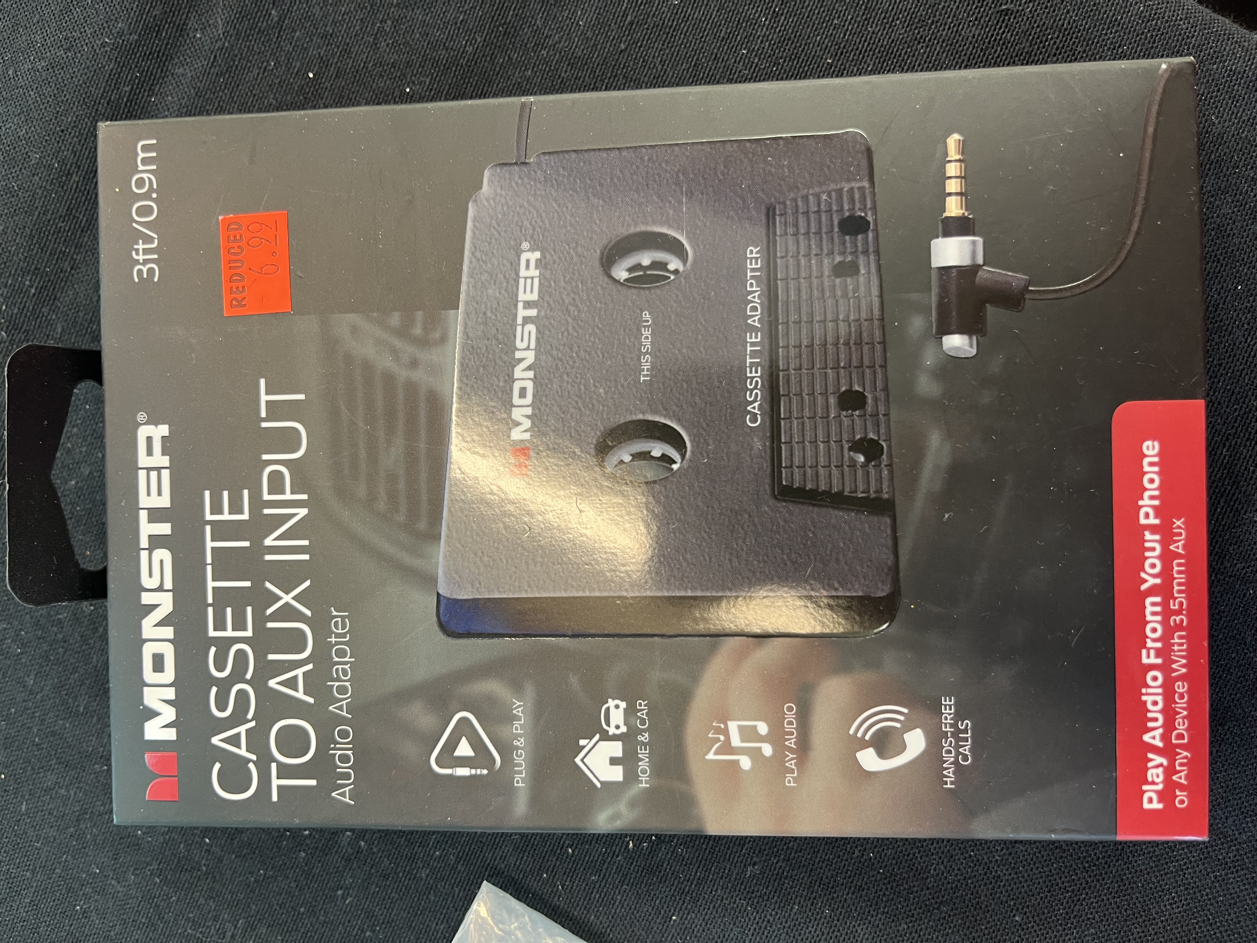 Does your car still have a cassette player? Do you want to listen to music or make hands-free calls with ease? With the Monster Cassette to Aux Audio Adapter, you’ll be able to do just that. Our device allows you to play audio from any compatible device that has a 3.5mm aux port, Smartphones, Tablets and more can work. The 3 feet long equipped in-line mic allows for safe hands-free calls while driving. Your installation’s a breeze, just plug into your cassette player, hook the cable into your device and you’re easily connected. Modernize your car’s setup with the Cassette to Aux Audio Adapter and get listening to your favorite music and more in an instant.