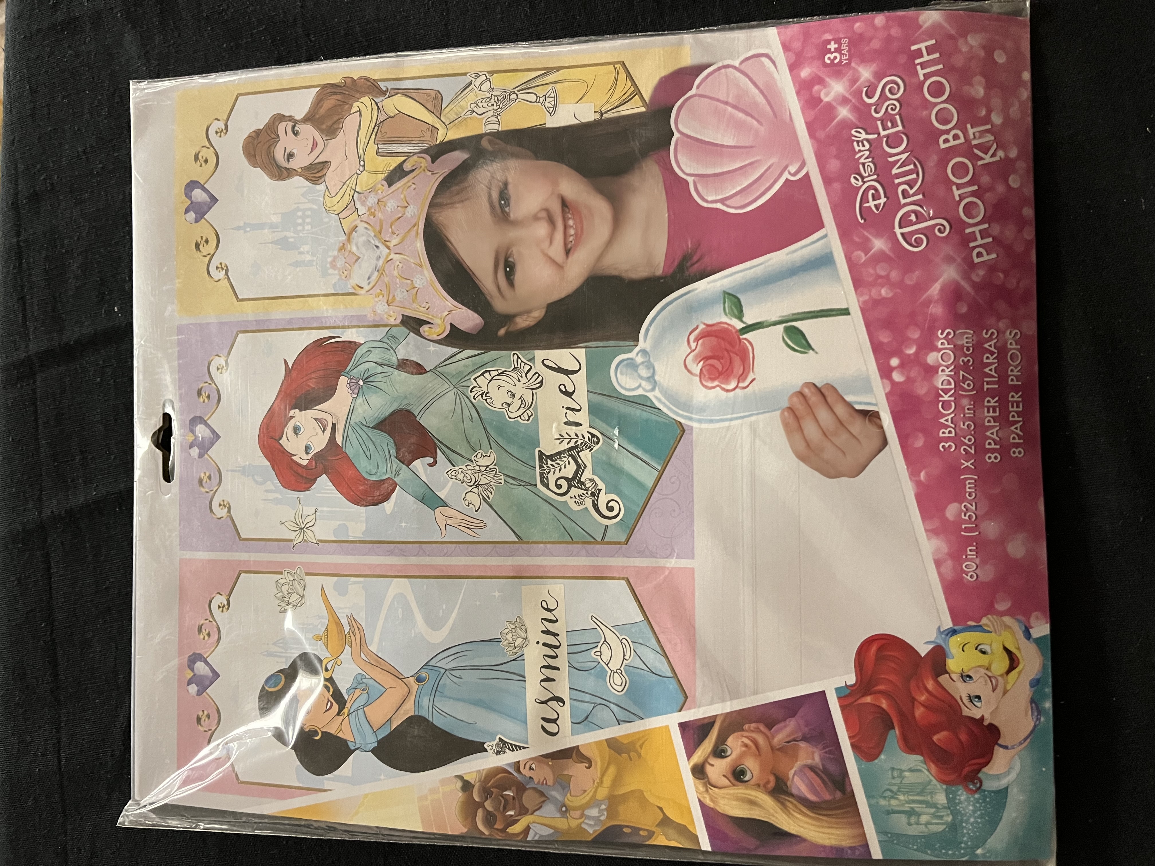 Take the perfect princess pictures with our Multicolor Disney Princess Photo Booth Kit! Featuring your favorite princesses like Jasmine, Ariel, and Belle, this all-in-one kit will bring a royal touch to your Disney Princess birthday party. This kit contains 3 photo booth backdrops, 8 paper tiaras, and 8 paper photo props. Line up the backdrops on your wall, then hand out the tiaras and props when you're ready for some photo booth fun! Turn your party into a fairytale and shop the rest of our affordable Disney Princess themed party supplies.