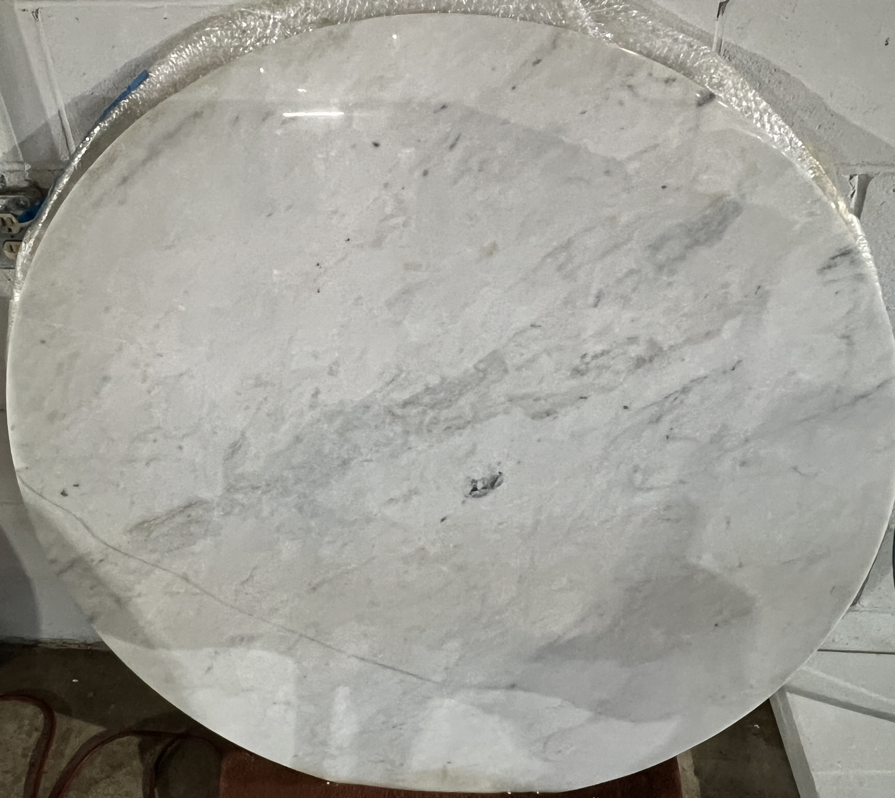 Nero curves mid-century modernism in a new direction, mixing metal and marble in a forward-thinking design. Coated with a matte white finish, the metal base sweeps a slender trumpet pedestal to support a round of beautiful white marble. We love the dining table's versatile, monochromatic design enhanced by the unique veining and subtle color variations of natural marble. Sized for smaller spaces, our exclusive Nero pedestal table comfortably seats up to four. •Cast aluminum and iron base with matte white powdercoat finish •White marble top •Seats up to 4 •Natural variations in veining and color will vary • Learn more about natural marble characteristics •Wipe with damp cloth; use coasters to protect surface • Made in India